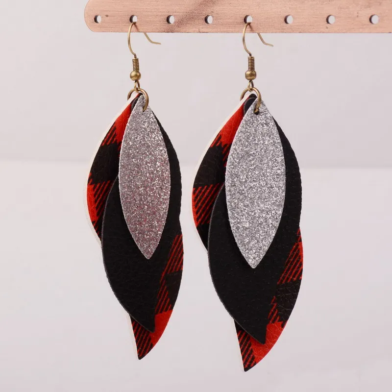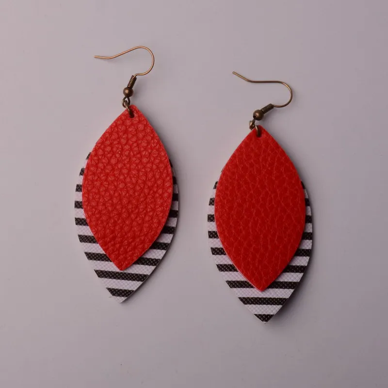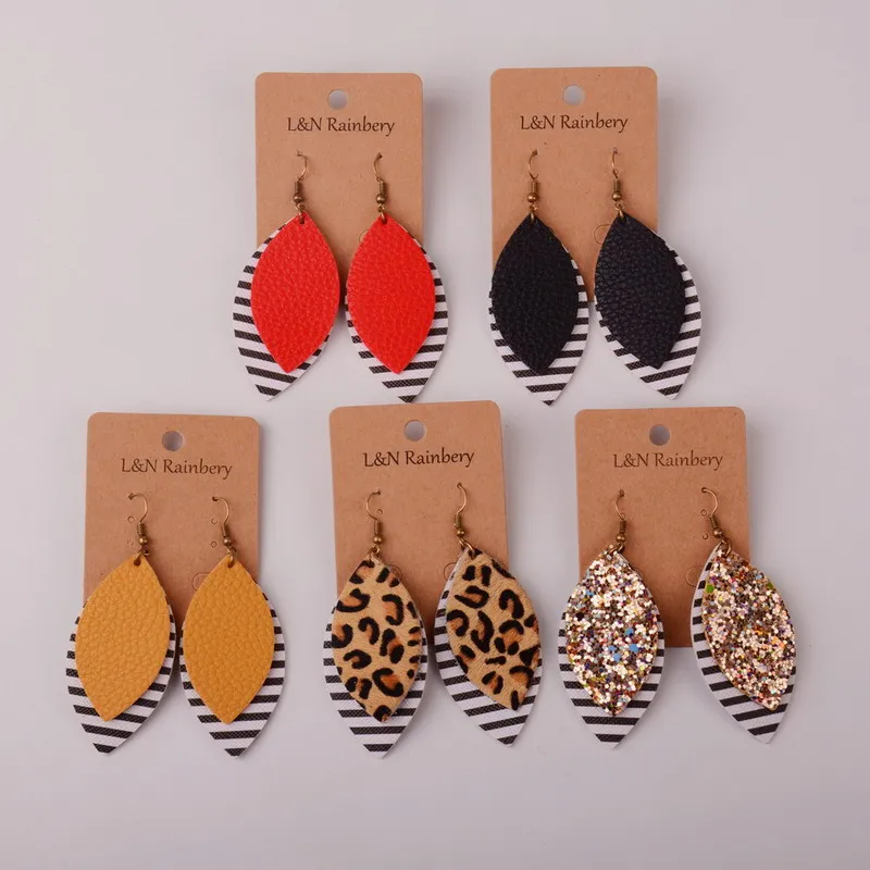 Двухслойные блестящие леопардовые серьги из искусственной кожи в виде листьев слезы модные черно-белые серьги в полоску