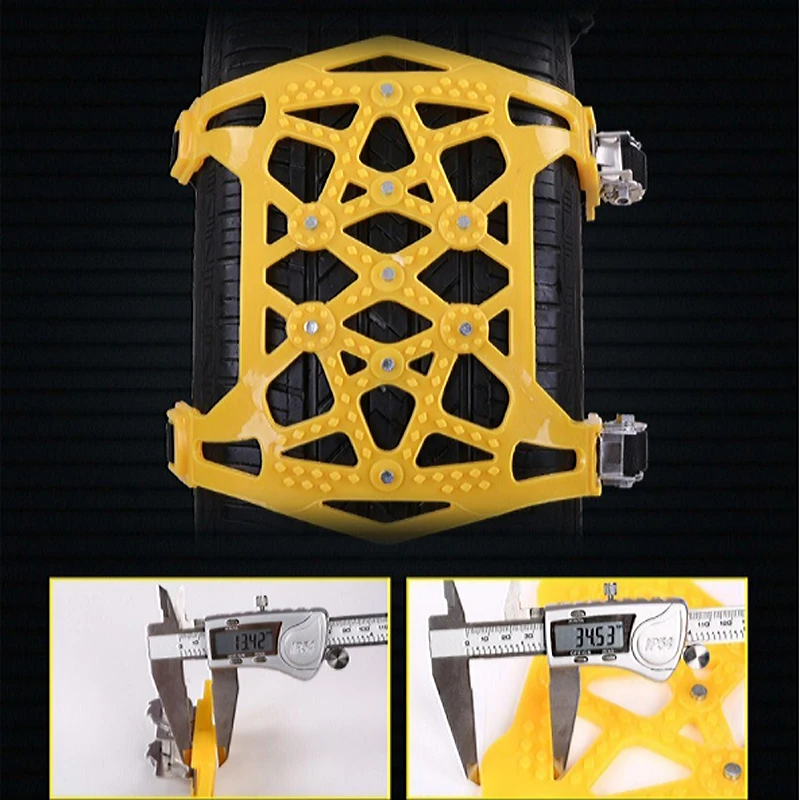 Простота установки: снежные цепи универсальны. Подходит для большинства автомобилей, внедорожников, внедорожников... нет необходимости устанавливать модели шин. Можно устанавливать вручную без использования колесных подъемников или движущихся транспортных средств.