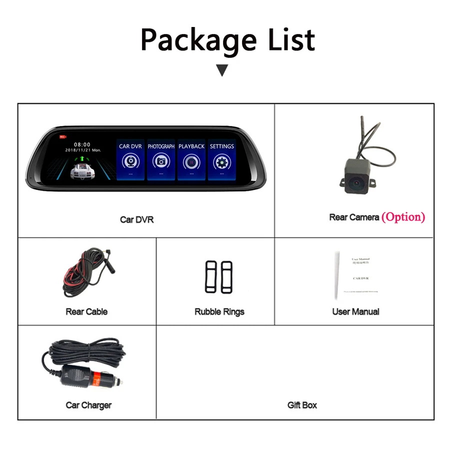 Функция Bluetooth Hands-free: с функцией Bluetooth hands-free, После сопряжения Bluetooth между видеорегистратором и смартфоном, вы можете совершать и принимать звонки непосредственно с самого зеркала dvr со встроенным микрофоном и динамиками.