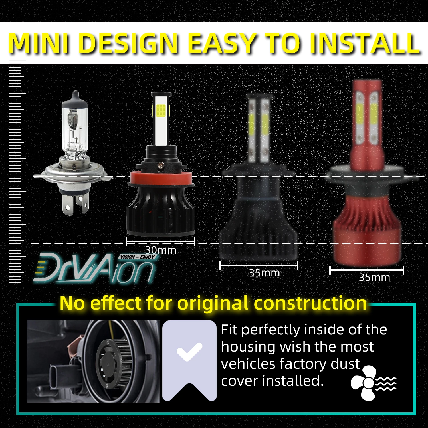 Отличный внешний вид дизайна-мини-размер дизайна, всего 30 мм, использует авиационный 6063 Алюминиевый профиль прочный и прочный. Супер яркий Bridgelux ODM чип -- (2 шт./компл.) H11 H8 H9 Bridgelux ODM светодиодный фар conversion kit, 360 градусов ясный луч, без слепых зон. Дизайн инженерного луча-бросок светильник на дороге равномерно под подходящим углом без туманного светильник, ксеноновый белый светильник отражает дорожную краску/знаки лучше, чтобы показать более четкую дорожную ситуацию. Устойчивая температура-все-в-одном теплопроводность + высокоскоростная Бесшумная вентиляторная система удерживает лампу-светильник при соответствующей рабочей температуре. Быстрый запуск -- встроенный процессор постоянного тока, мгновенная полная яркость без реле запуска. Двусторонний канал отвода тепла -- все-в-одном алюминиевый профиль как теплопроводность системы, 360 градусов тепла, высокая скорость бесшумный вентилятор (12000 об/мин), высокий поток воздуха для более быстрого охлаждения.