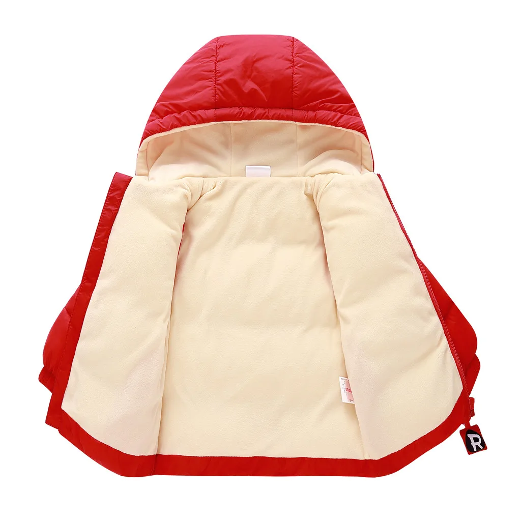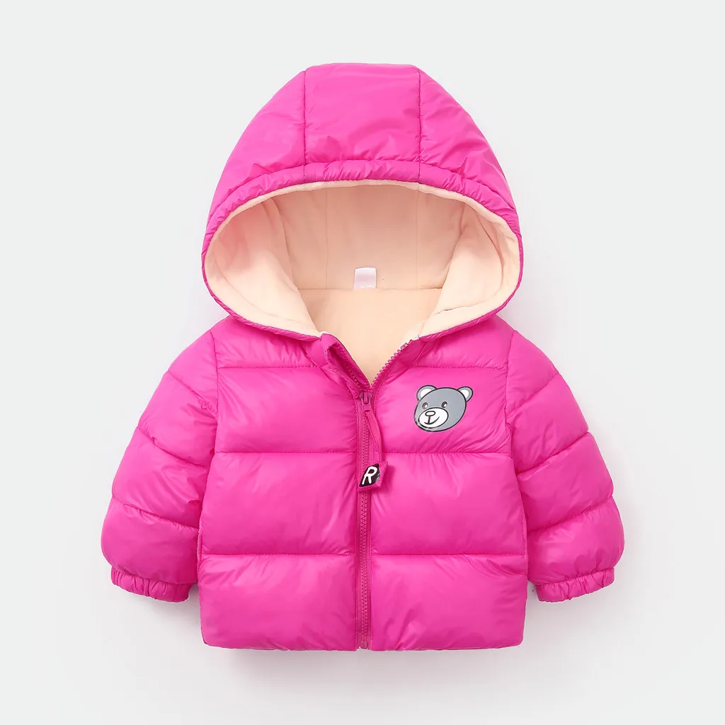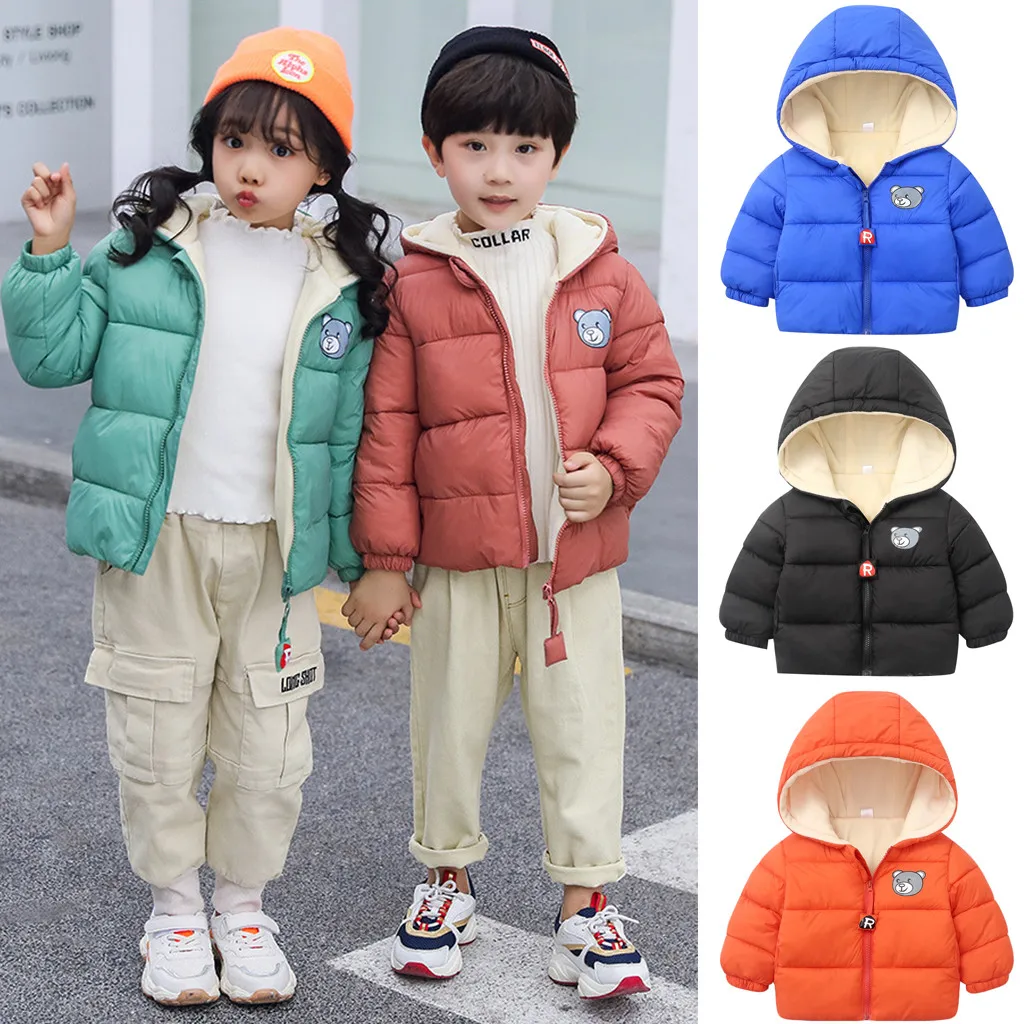 Детские зимние пальто для мальчиков и девочек, куртка на молнии, толстая зимняя толстовка с капюшоном и рисунком медведя, верхняя одежда