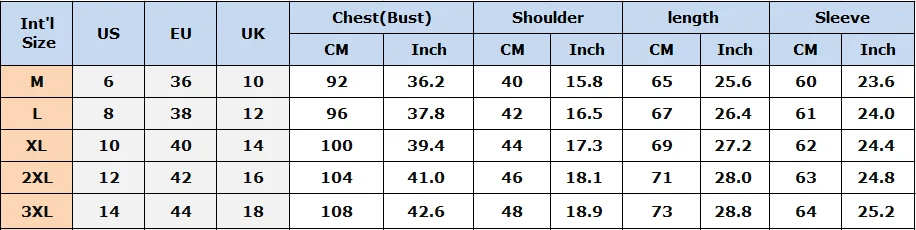 Примечание: Это Азиатский Размер,Работает намного меньшеПожалуйста, закажите размер на 1-2 размера, или, пожалуйста, подтвердите измерения, прежде чем выбрать размер.