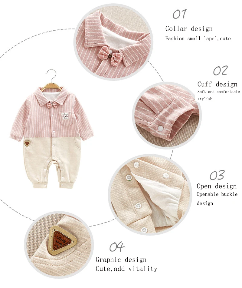 Стильный дизайн с лацканами, живой и милый Манжеты, удобные и не обтягивающие Можно открыть и пристегнуть для легкой смены детских подгузников