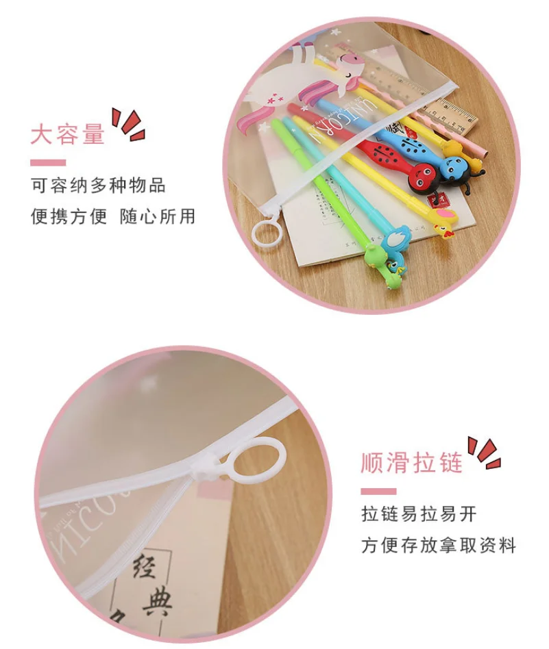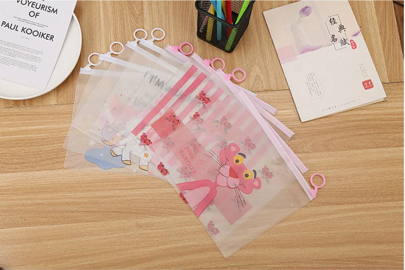 Чехол для карандашей с единорогом, сумка для хранения с кольцом, мультяшный розовый Леопардовый студенческий чехол для карандашей с милым девчачьим сердцем, прозрачная водонепроницаемая сумка для файлов