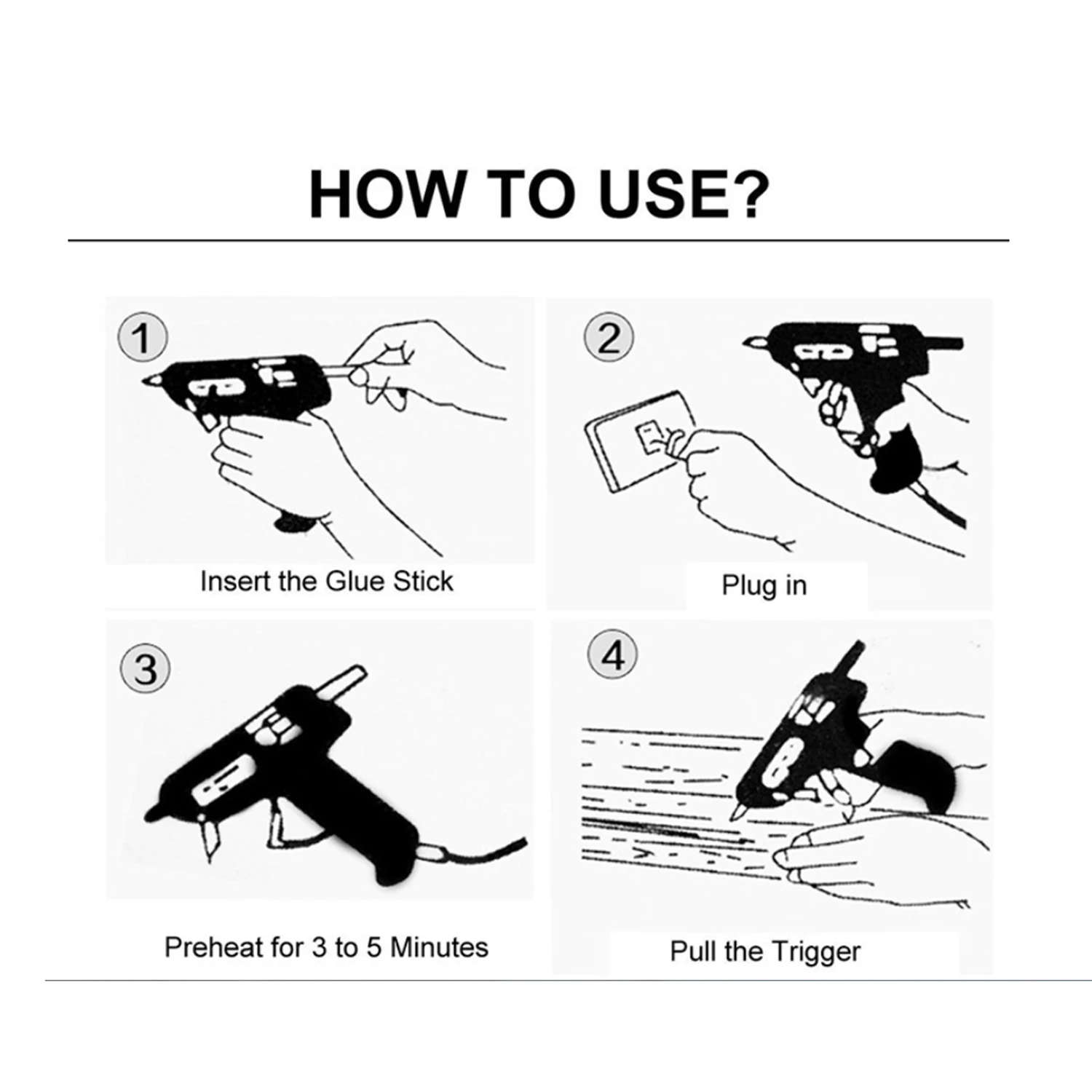 1. Когда Новый клеевой пистолет используется в первый раз, может появиться небольшой дым, что является нормальным явлением. После 30 минут использования дым автоматически исчезнет.