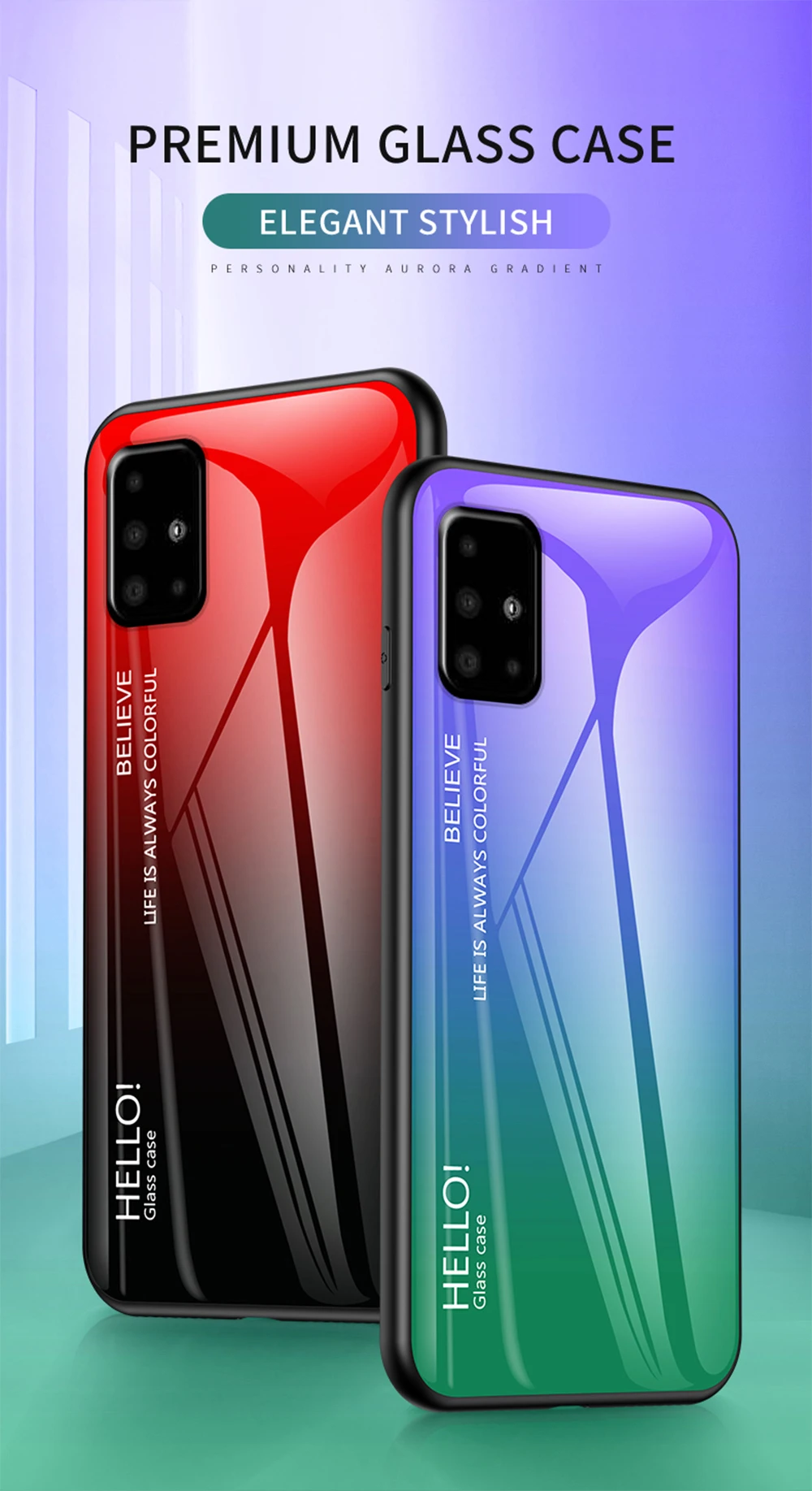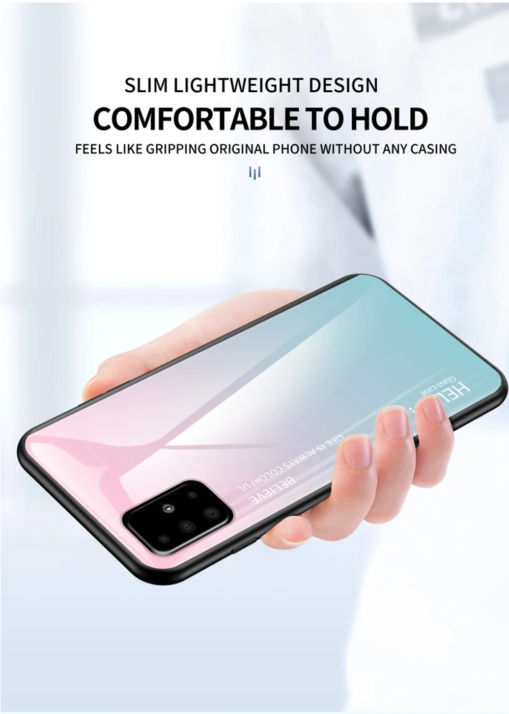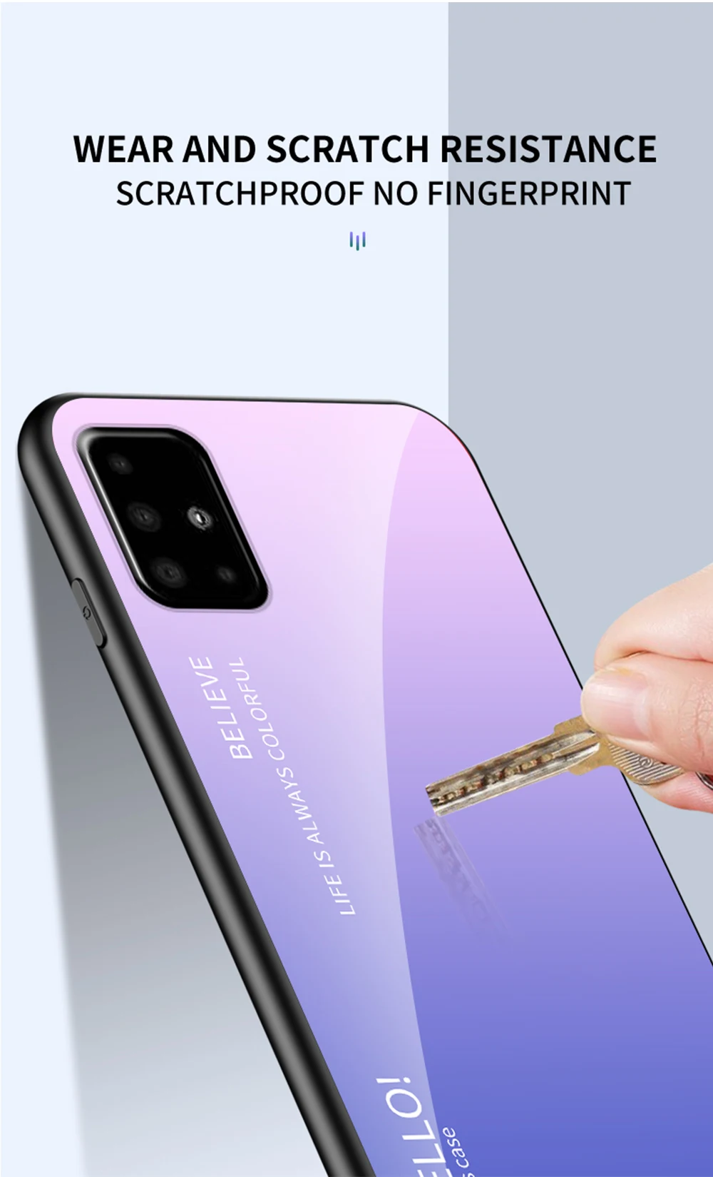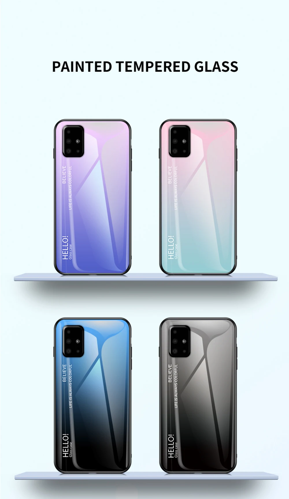 2. Beautiful Gradient color, 9h strengthened hard glass, Anti-slip design of frame
