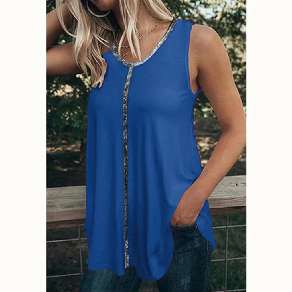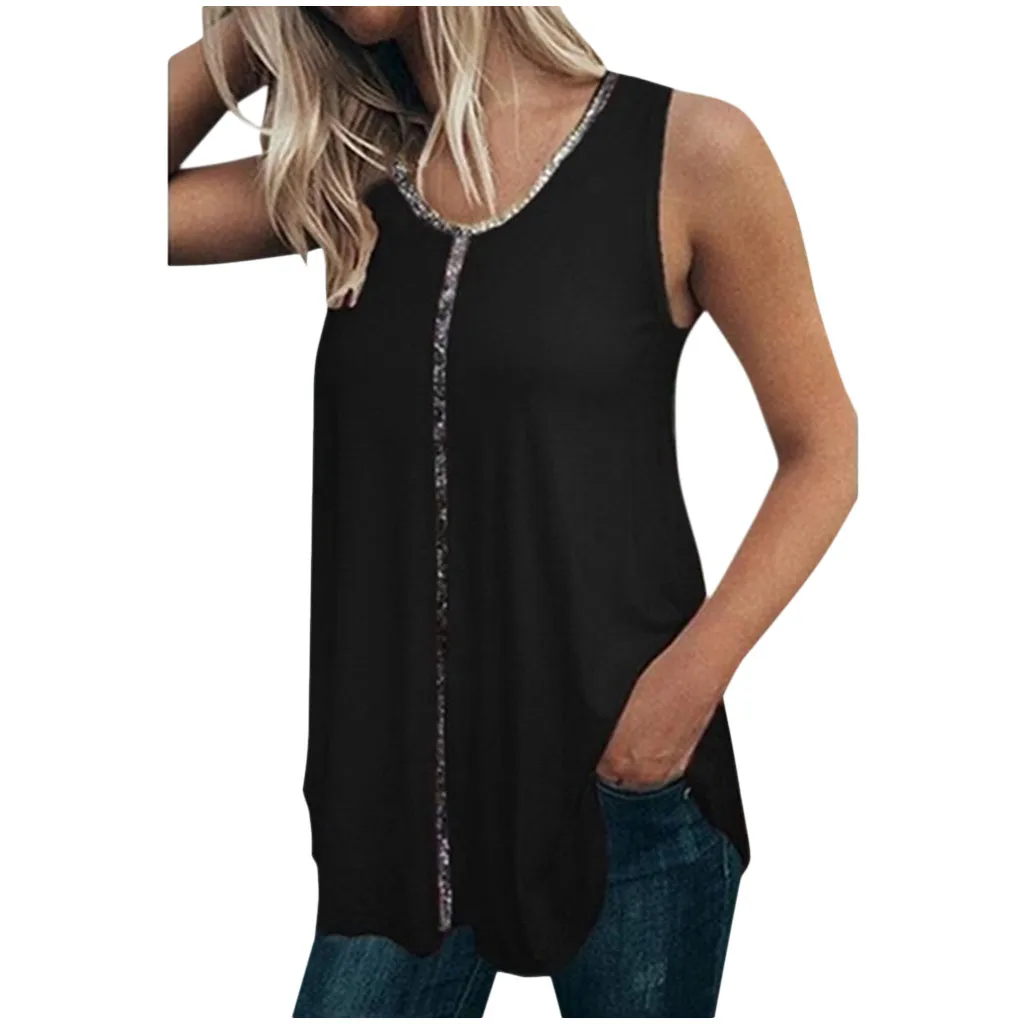 Женские летние однотонные топы, повседневные свободные майки без рукавов с v-образным вырезом