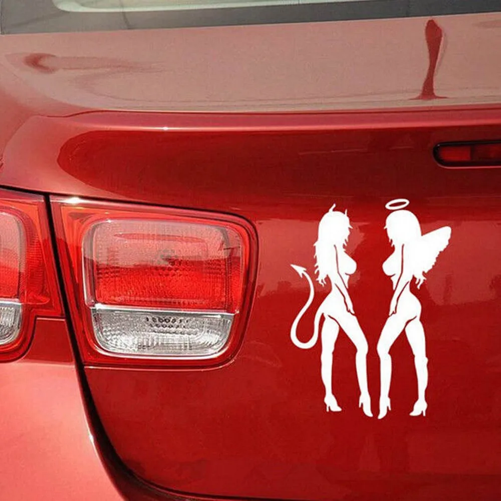 Цвет: черный, белый1 шт., хит продаж, Классическая Сексуальная наклейка для девочек, гнев, дьявол, красота, 16*11 см, белая Автомобильная наклейка