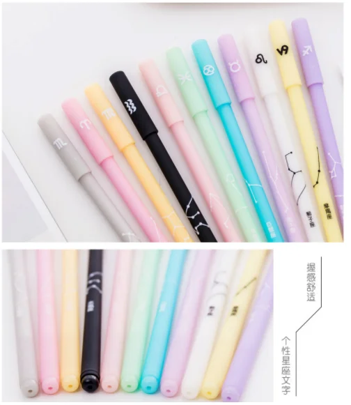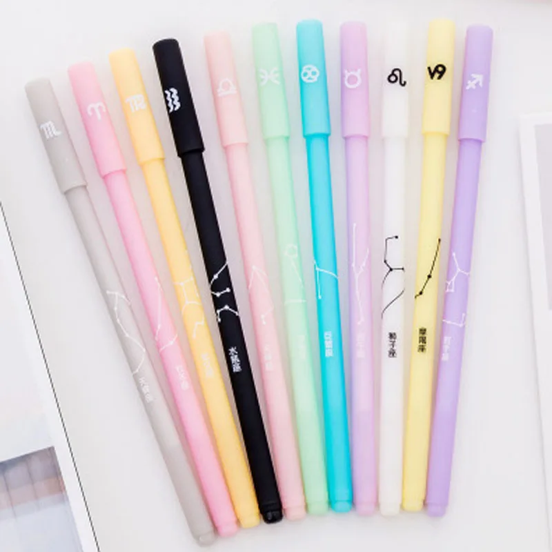 3 шт, 12 созвездий, 0,5 мм, черные ручки для школы, гелевая ручка, Kawaii, школьные принадлежности, милая ручка