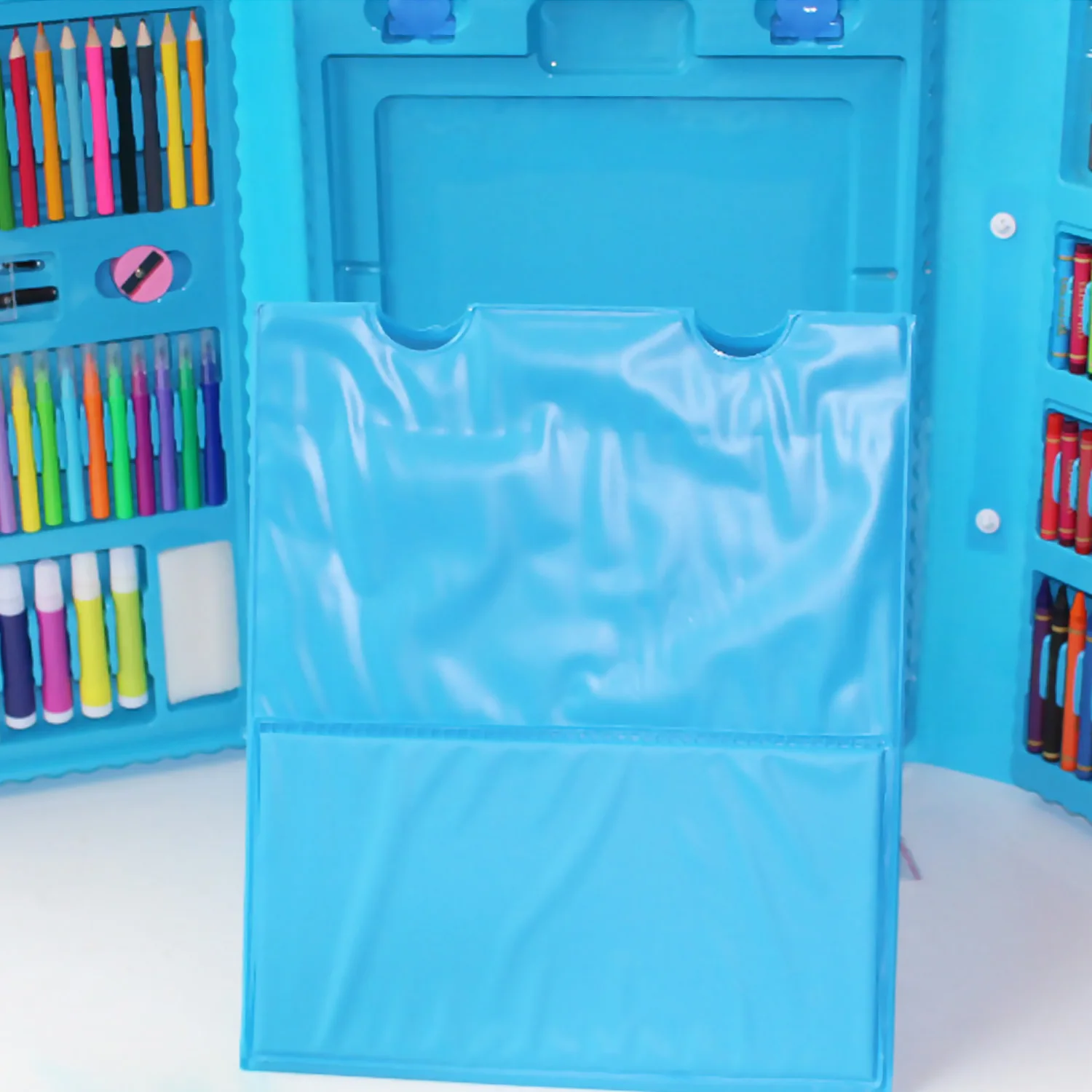 Все аксессуары аккуратно упакованы в Прочный чехол для переноски, поэтому независимо от того, где находится ваш ребенок, он может иметь вдохновляющую художественную студию у вас под рукой.