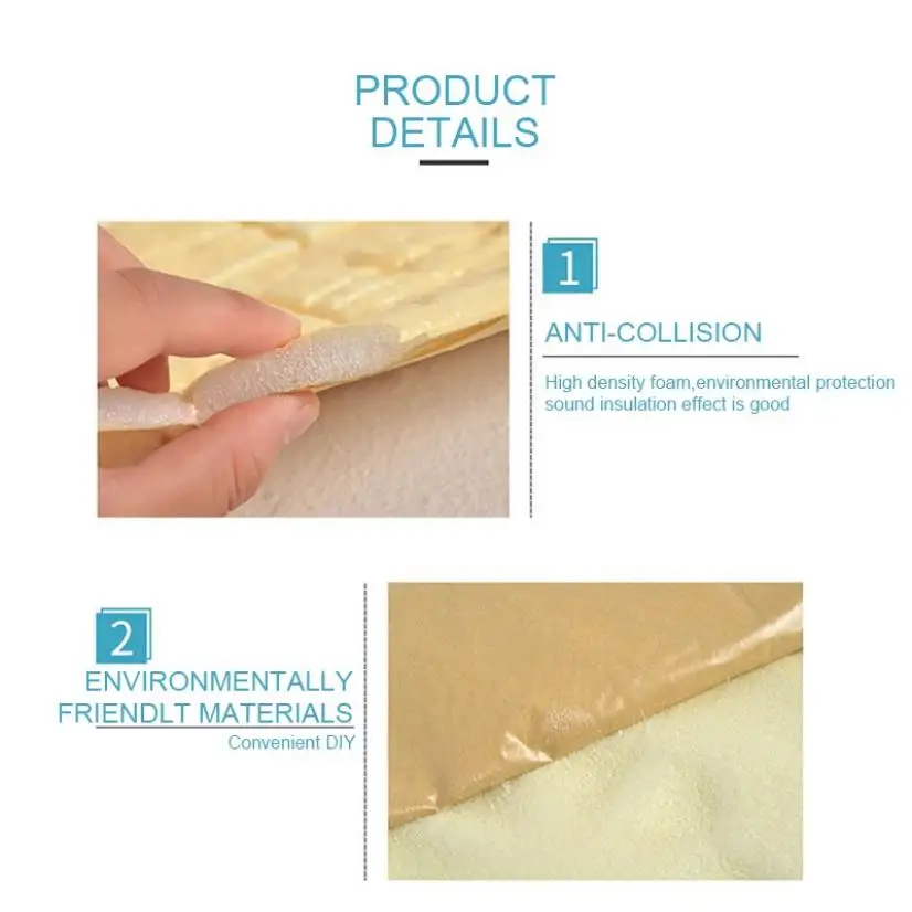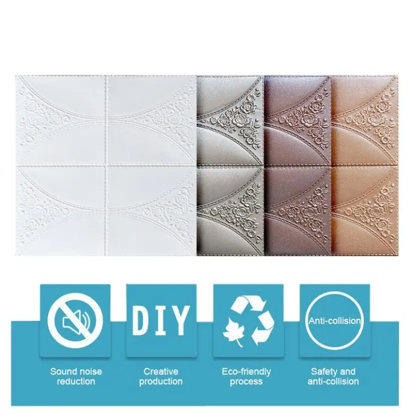 1. 3d декоративная наклейка на стену из пенопласта 2. Безопасный и экологически чистый, подходит для домашнего безопасного пространства 3. DIY наклейки на стену, простой самоклеющийся дизайн, случайный коллаж 4. Лучший эффект шумоподавления, чем обычные обои 5. Водонепроницаемый и легко чистится
