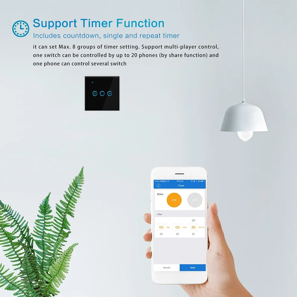 Тип переключателя: сенсорный/приложение/Голосовое управление/затемнение