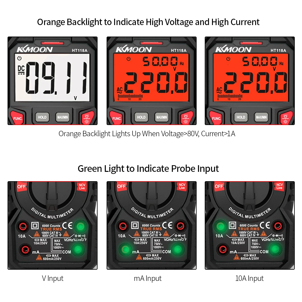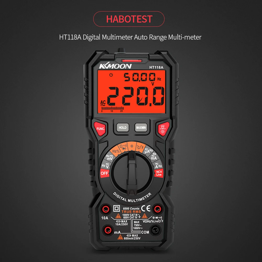 Широкий диапазон измерений: для измерения напряжения постоянного/переменного тока, постоянного/переменного тока, сопротивления, емкости, диодного теста, NCV теста, живого теста, частоты, температуры и т. Д.
