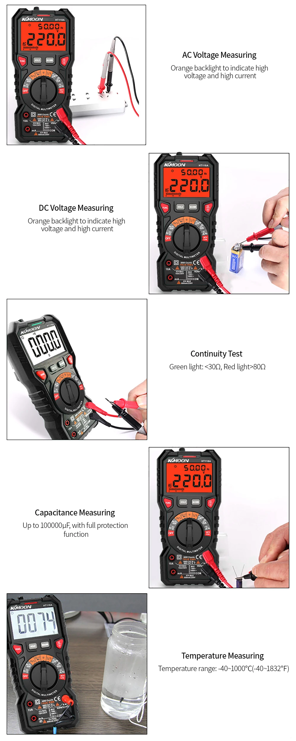 Диапазон температур: диапазон тестирования-40 ~ 1000 °C/-40 ~ 1832 °F, °C/°F единицы преобразования.