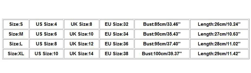 Размеры Американский размер Размер Великобритании Европейский размер Бюст Длина S 4. 8 32 85 см/33,46'' 26 см/10,24'' М 6 10 34 90 см/35,43'' 27 см/10,63'' L 8 12 36 95 см/37,40'' 28 см/11,02'' XL 10 14 38 100 см/39,37'' 29 см/11,42''