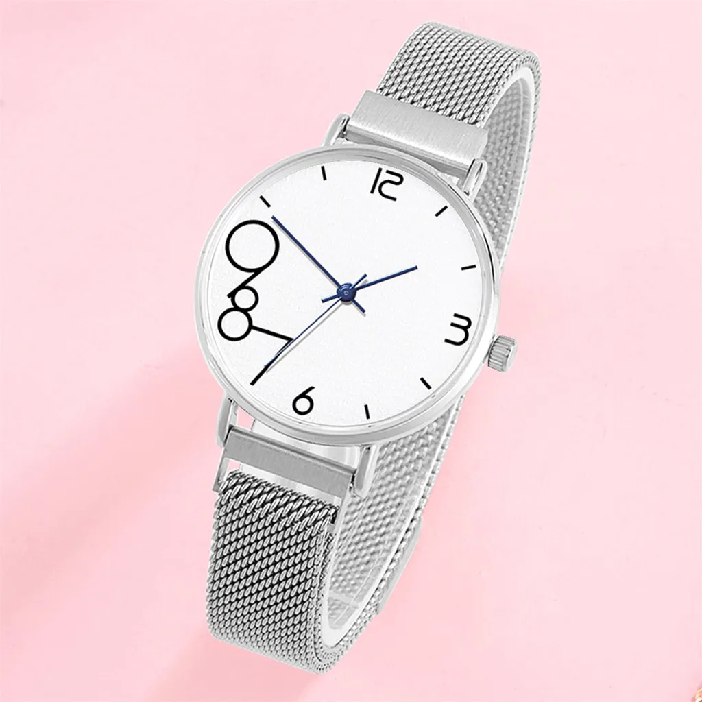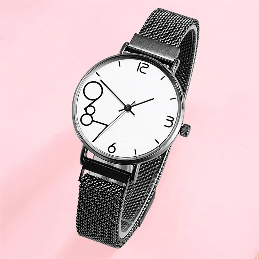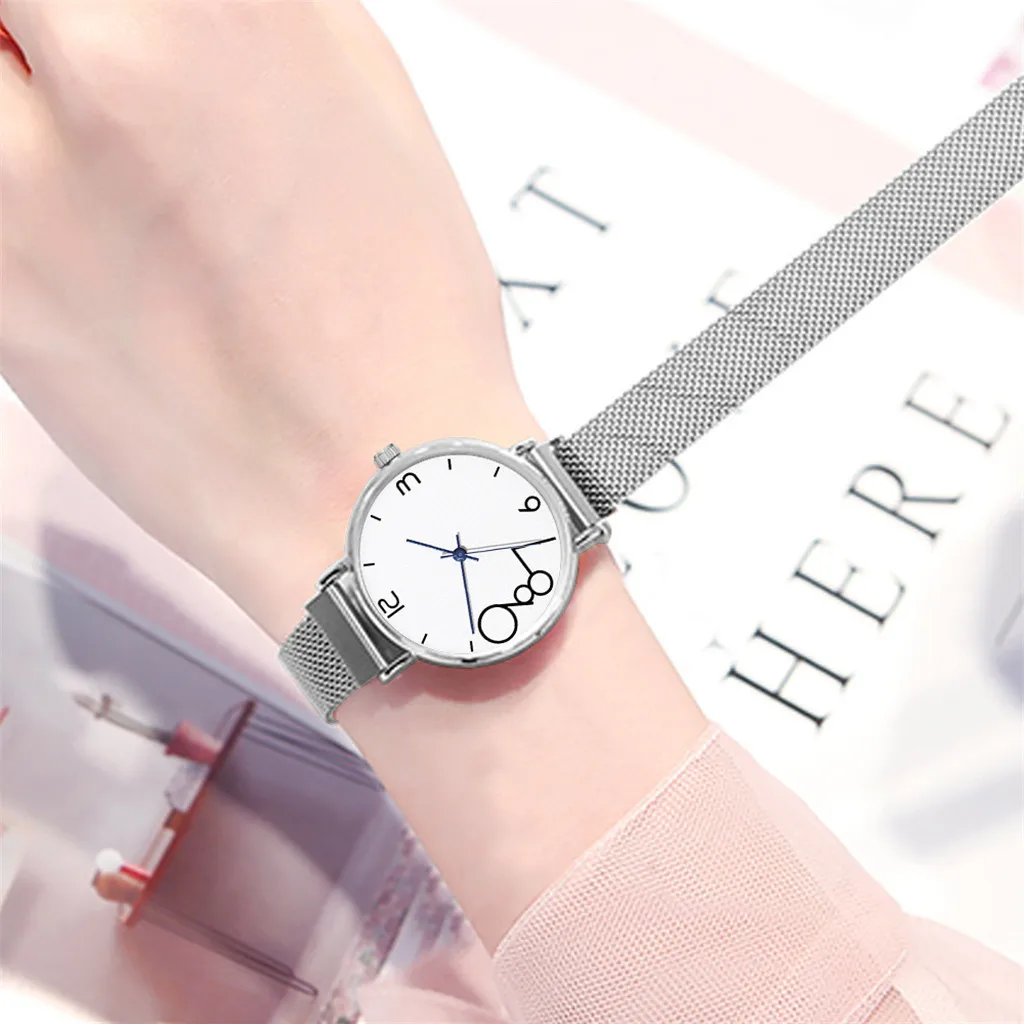 Fashion Women's Magnet Buckle Mesh Belt Watches Quartz Analog Round Wrist Watch