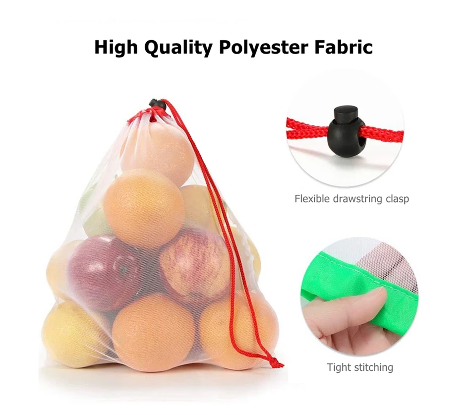 Бренд: pulisi Модель: многоразовые мешки из сетки Тип: экологически чистые-моющиеся и прозрачные-пакеты для хранения Размер: S/M/L (S ) 8x12 дюймов/20x31 см (М) 13x12 дюймов/33x31 см (Д) 16x12 дюймов/41x31 см Цвет: зеленый, синий, красный Посылка: 9 шт. в упаковке или 15 шт. в упаковке Материал: полиэстер