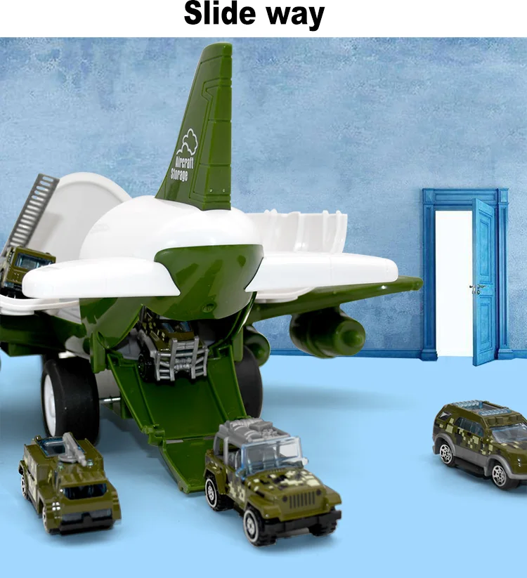 Дверь самолета может быть открыта и загружена несколькими машинными игрушками. Кабина самолета может быть использована в качестве слайда, чтобы сделать игрушечный автомобиль скользить. Инерция сильна, и она приносит много удовольствия детям. Цвет самолета: синий, зеленый, красный, желтый Размер самолета: 35*35*19 см (13,7*13,7*7,4 дюйма) Маленький сплав вертолета и небольшой сплав Длина автомобиля: 6-9 см (материал: сплав + пластик) Изготовлен из АБС-материала, безопасный, экологически чистый и нетоксичный