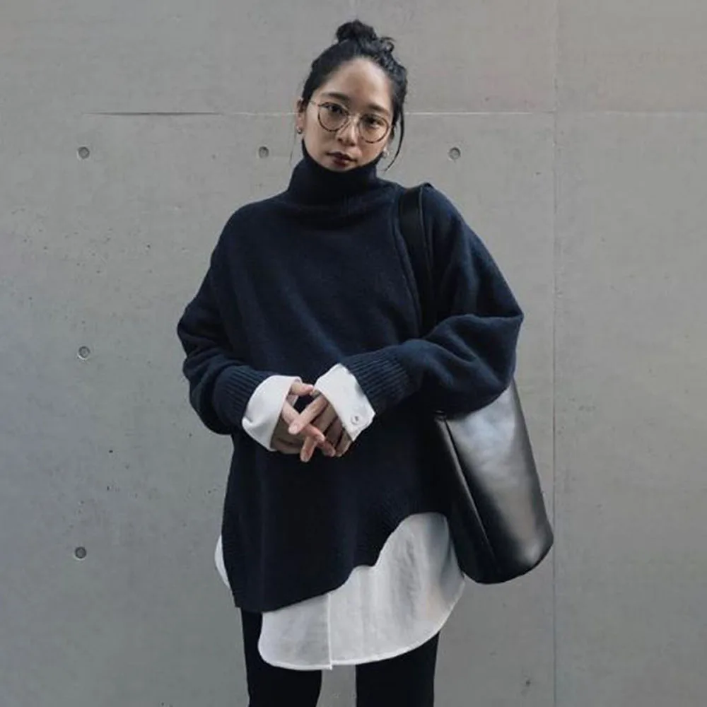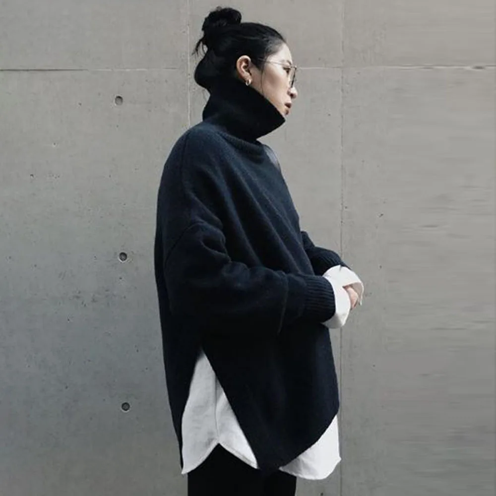 Осеннее элегантное платье в Корейском стиле с воротником-стойкой в винтажном стиле, Черное женское платье средней длины, пуловер с высокой талией, шикарные офисные женские платья
