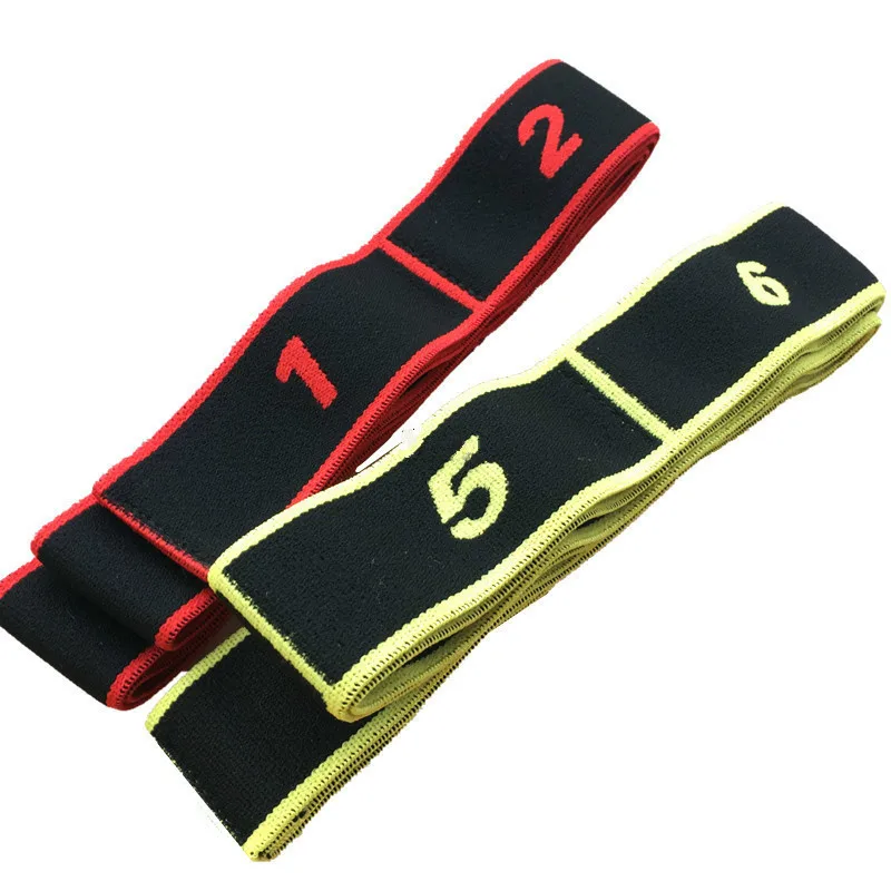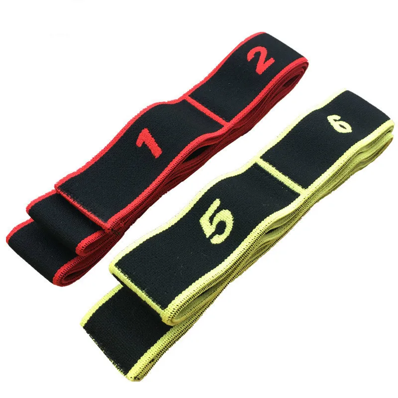 Эластичная лента для йоги, 8 сегментов, вес 75 г, длина 93 см, длина 4 см, один пакет OPP упаковка. Цвет красный и желтый.