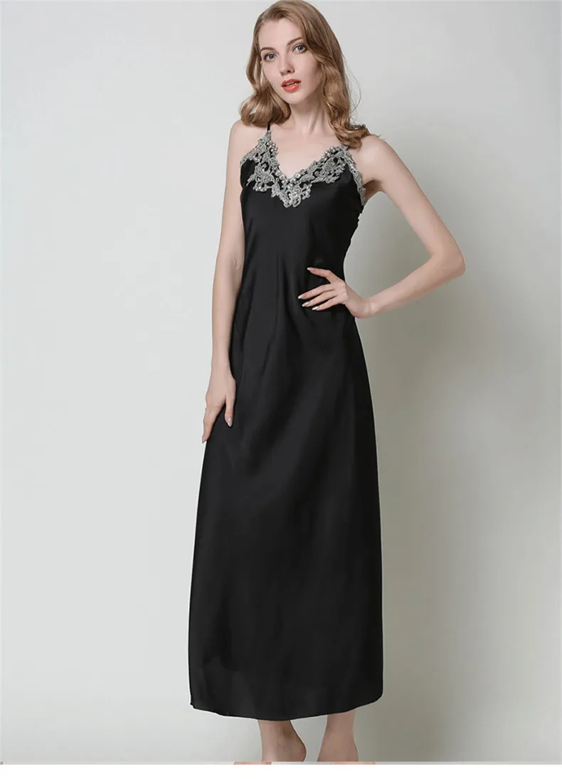 Фабричное производство, атласная шелковая ночная рубашка для женщин, большой размер, имитация шелка, ночные рубашки, кружевное сексуальное платье с v-образным вырезом, длинное платье для сна 95051