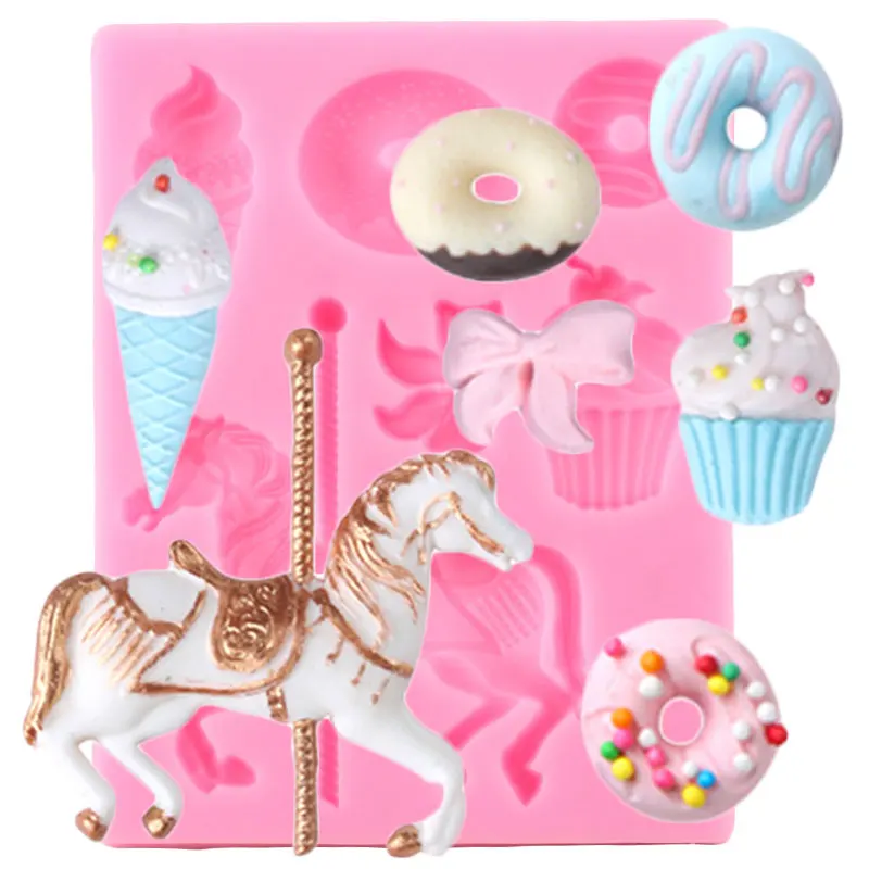 Карусель силиконовая форма для украшения детского торта на день рождения инструменты пончики мороженое кекс Топпер помадные формы конфеты шоколадные формы