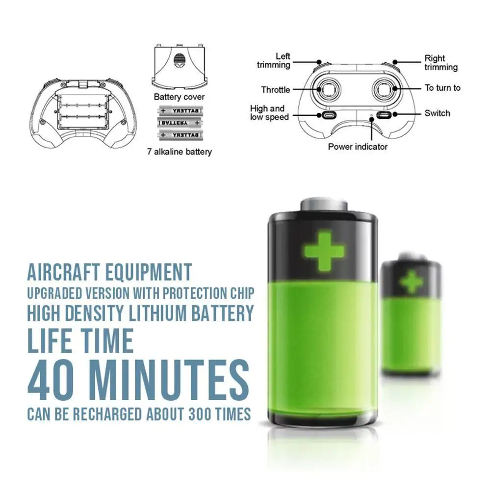 Функции: 2 канала, встроенный гироскоп, защита от низкой мощности, подъем, спуск, Полет вперед, поворот налево, поворот направо