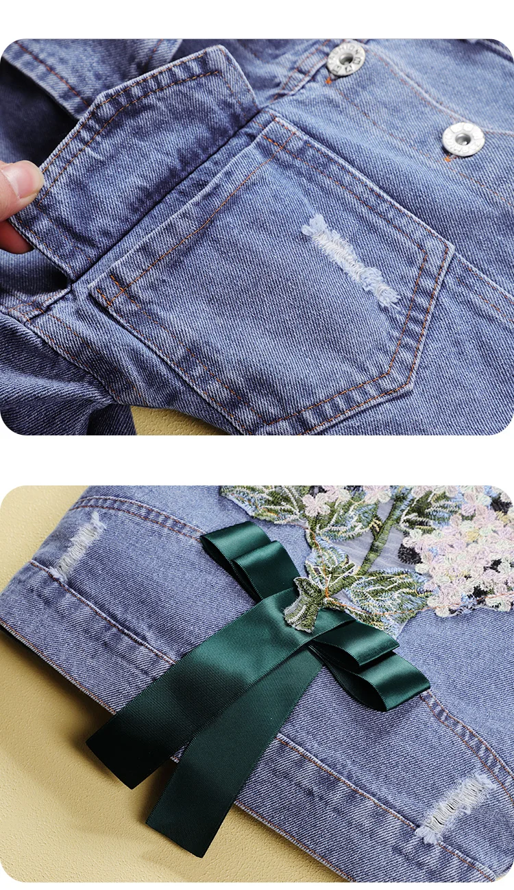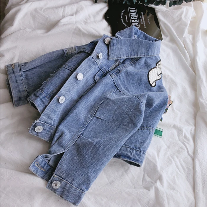 Детские джинсовые куртки для девочек; Детские пальто с цветочным принтом; Сезон весна-осень; Модная детская верхняя одежда; Рваные джинсовые куртки; Детские пальто для девочек