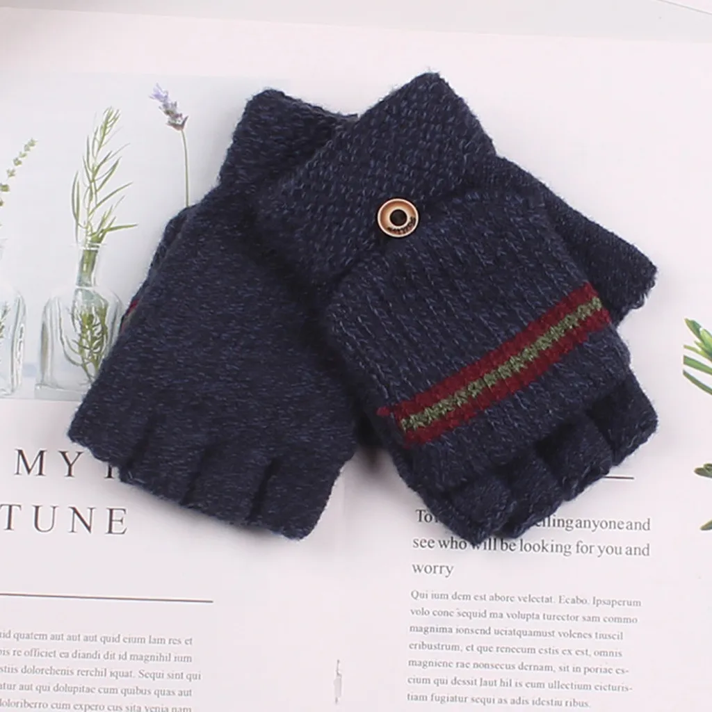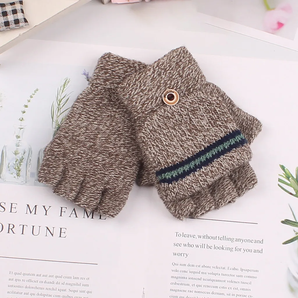 Зимние Детские перчатки больших размеров, вязаные перчатки с полупальцами, перчатки для мальчиков из пряжи AB
