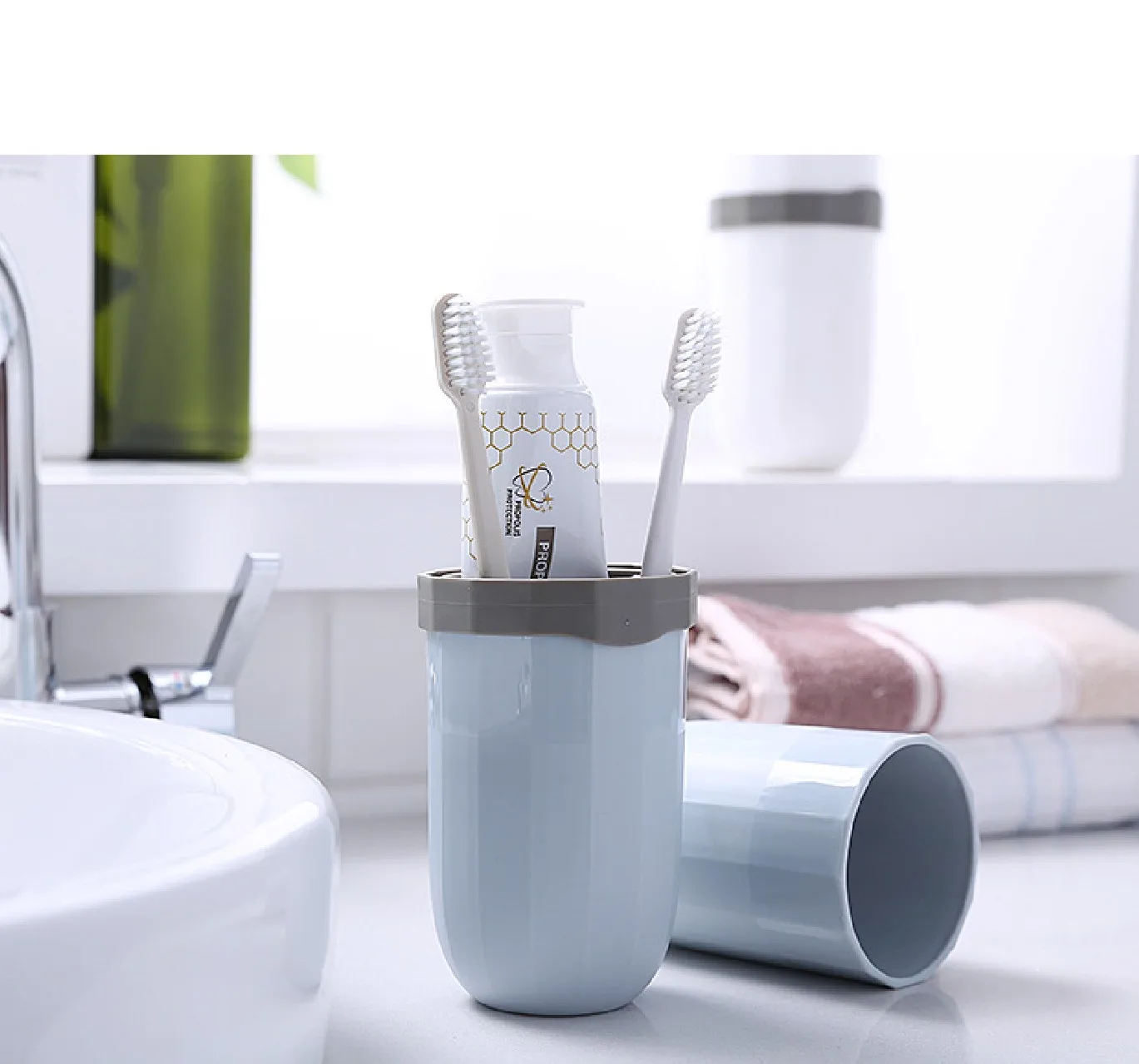 1) Материал: пластик, материал полипропилена 2) Классификация разделения чашки, чтобы держать зубную щетку чистой и сухой. 3) легко носить, больше места для загрузки больше вещей. 4) идеально подходит для путешествий и может использоваться в качестве чашки для полоскания рта. 5) три цвета по выбору. 6) Размер: 6,8 (Ш) * 20,8 (В) см 7) Вес, посылка: 0,14 кг