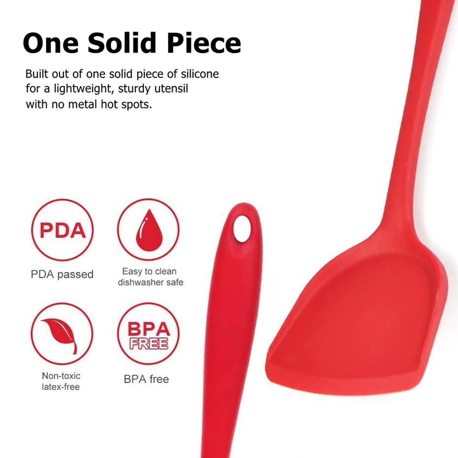 Антипригарный: Используйте пищевые силиконовые инструменты для посуды, чтобы ваши кастрюли и сковородки не царапались. Без плавления: силиконовые инструменты для приготовления пищи отличаются термостойкостью до 260 ℃ или 500 °F не плавятся. Готовьте ваши любимые блюда, не беспокоясь Прочный: цельная конструкция изготовлена из прочного нейлонового внутреннего сердечника и скреплена силиконом для лучшего сочетания долговечности и термостойкости. Защитите ваши дорогие кастрюли: головки с силиконовым покрытием достаточно прочные, легко поднимаются или перемешиваются, но покрыты мягким, гибким силиконовым покрытием, поэтому больше царапин не будет. Гигиеничный и простой в чистке-инновационный дизайн означает отсутствие швов или трещин для ловли пищи и вредных бактерий. Очистка-это ветерок-просто протрите под горячей водой или бросьте в посудомоечную машину.