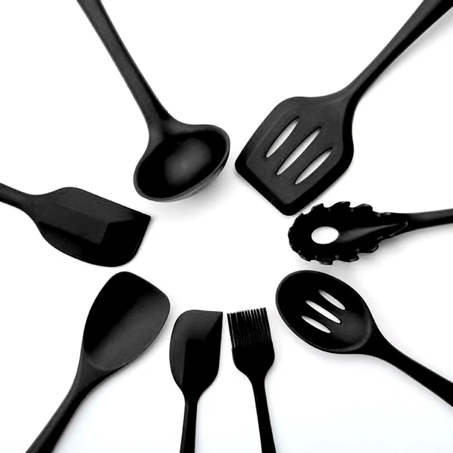 Бренд: pulisi Товар: Наборы инструментов для приготовления пищи Характеристики: высококачественный силиконовый набор кухонной посуды Температура степень защиты от-40 ℉ ~ 500 ℉ Цвет: черный, красный Посылка: 1 шт. в упаковке Размеры: Satula: 13x3,8 дюйма/33x9,6 см Дуршлаг: 12.9x3.9in / 32.7x10cm Щеточка для барбекю: 8.3x1.3in / 21x3.3cm Маленький шпатель: 8,1x1,6 дюйма/20,5X4 см Большой шпатель: 10.8x2.2in / 27.5x5.5cm Щипцы: 10.6x1.5in / 27x3.8cm Венчик: 9,8x2,28 дюйма/25х5,8 см Суповый ковш: 11,8x3,5 дюйма/30x8,8 см Спагетти сервер: 11,3x2 дюйма/29х5, 5 см Щелевые Тернер Шпатель: 12x3.15in / 31x8cm Шлицевая сервировочная ложка: 10,8x2,3 дюйма/27,5X5,8 см Лопатка ложка: 10.8x2.4in / 27.5x6cm