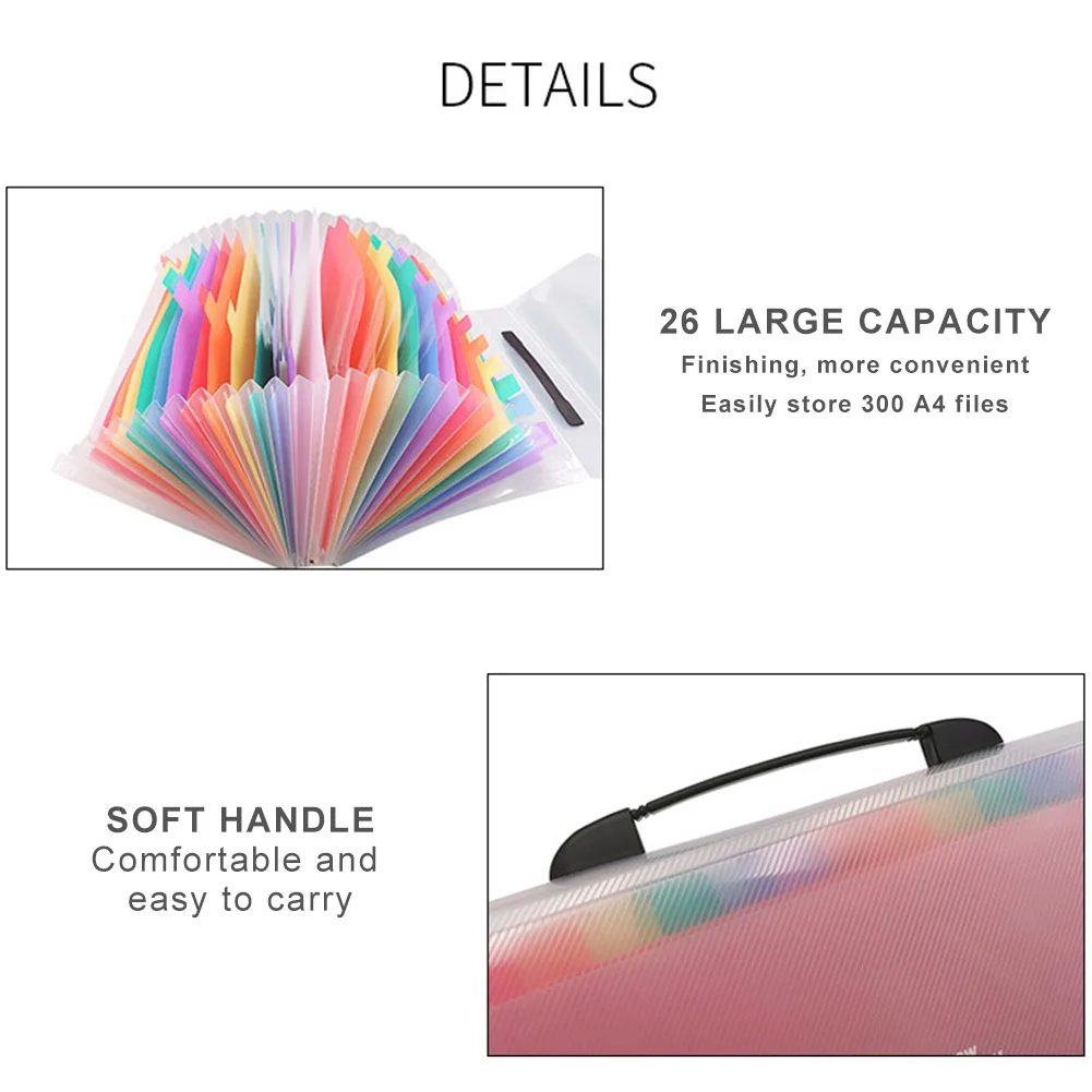 Название продукта: 26 карманов, расширяющаяся папка для файлов с крышкой, органайзер для файлов, переносной формат A4, коробка для файлов с буквами, пластиковая цветная бумага, органайзер для документов, папка для документов, органайзер