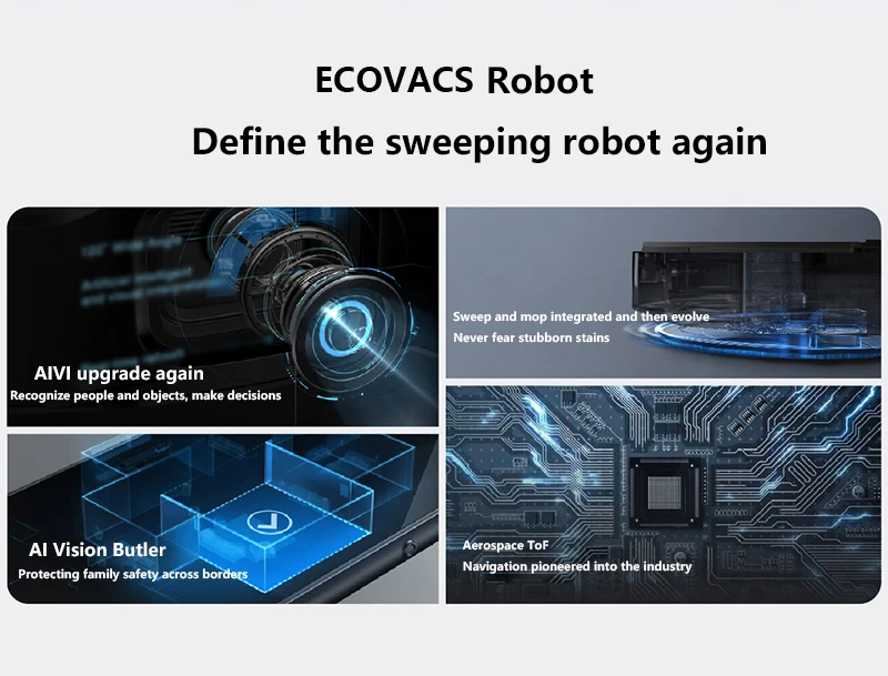 Определите робот-подметатель снова -AIVI™Обновление от умной очистки до домашнего мониторинга -Подметание и измельчение вместе, а затем развитие, никогда не бойтесь упрямых пятен -AI vision butler защищает безопасность семьи через границы -Космическая навигационная компания ToF впервые открыла индустрию