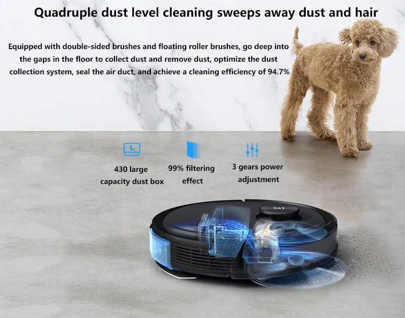 T8 AIVI сделал прорыв в инновациях, и эффективность очистки достигла нового максимума. Он действительно чист, когда 94.7% земли удаляется. Герметичный воздуховод и неразрушающий вентилятор, стабильная Выходная Высокая мощность всасывания пыли, мощность 5200 мАч, длительное и эффективное удаление пыли до 180 mintue