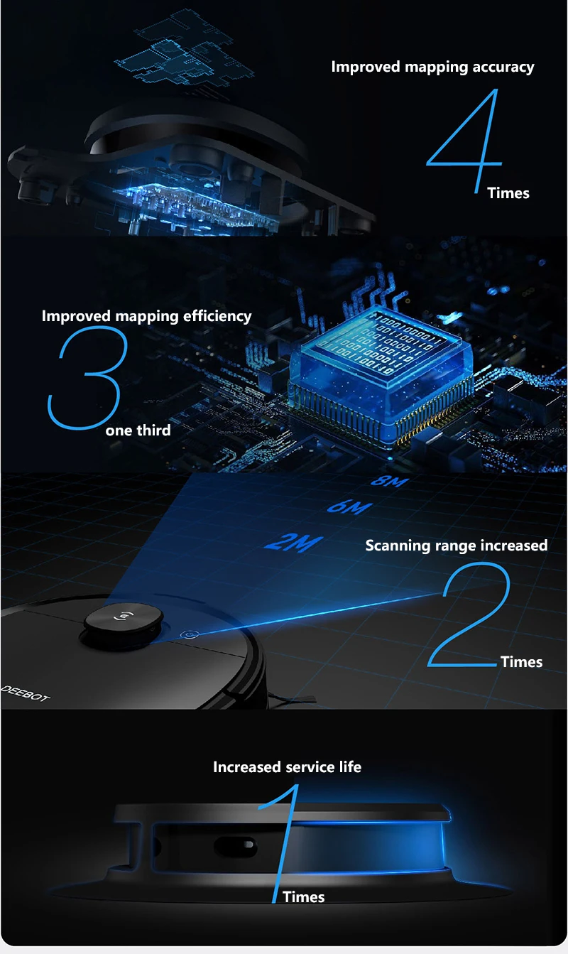 -Точность отображения увеличивается в 4 раза -Повышение эффективности картирования на 1/3 -Диапазон сканирования увеличивается в 2 раза -- Срок службы в два раза