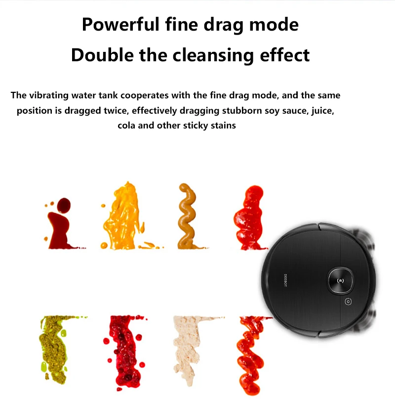 Вибрирующий резервуар для воды сотрудничает с режимом тонкого сопротивления, и одно и то же положение затягивается дважды, эффективно перетаскивая упрямый соевый соус, сок, колу и другие липкие пятна.