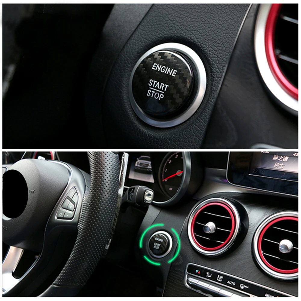 Наклейки CARMON на кнопки запуска двигателя из настоящего углеродного волокна, декоративные наклейки для Mercedes Benz Class C W205 GLA GLC B200, красно-черные, стайлинга автомобилей