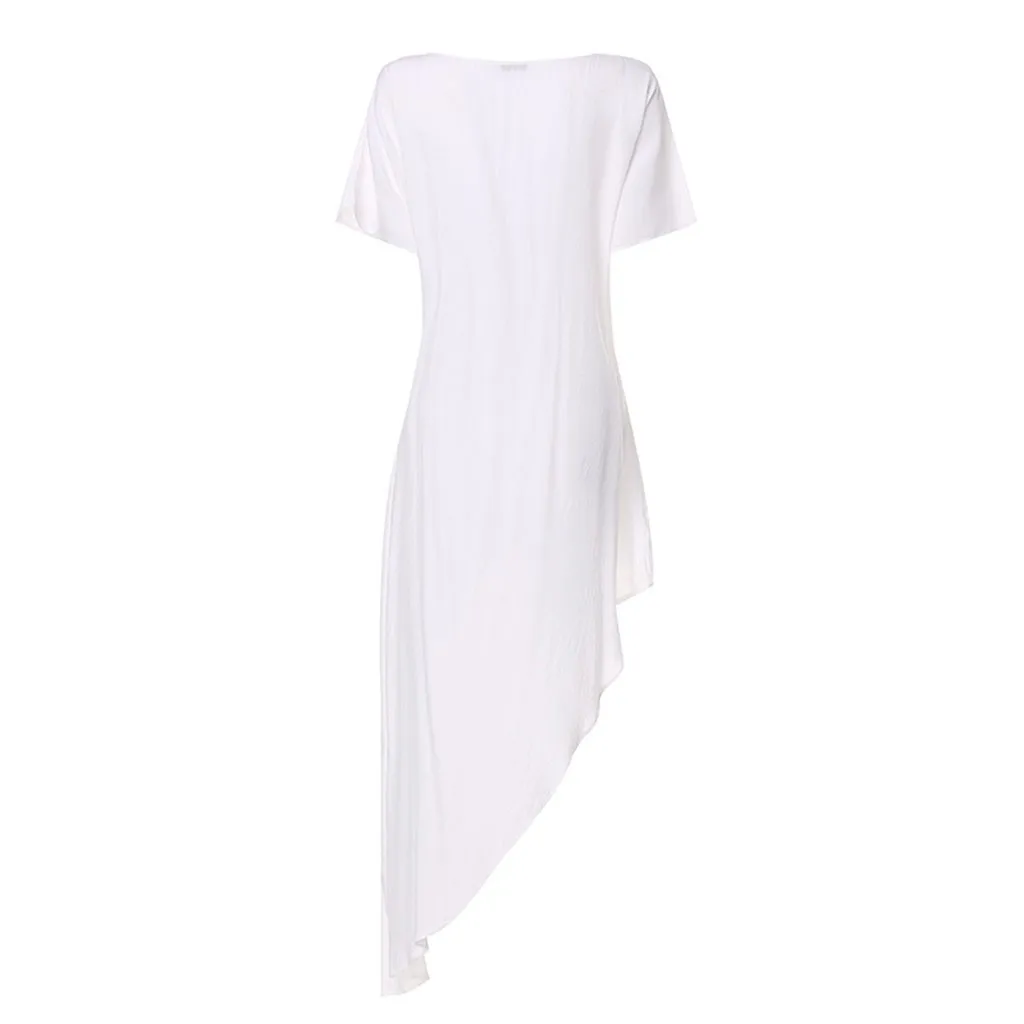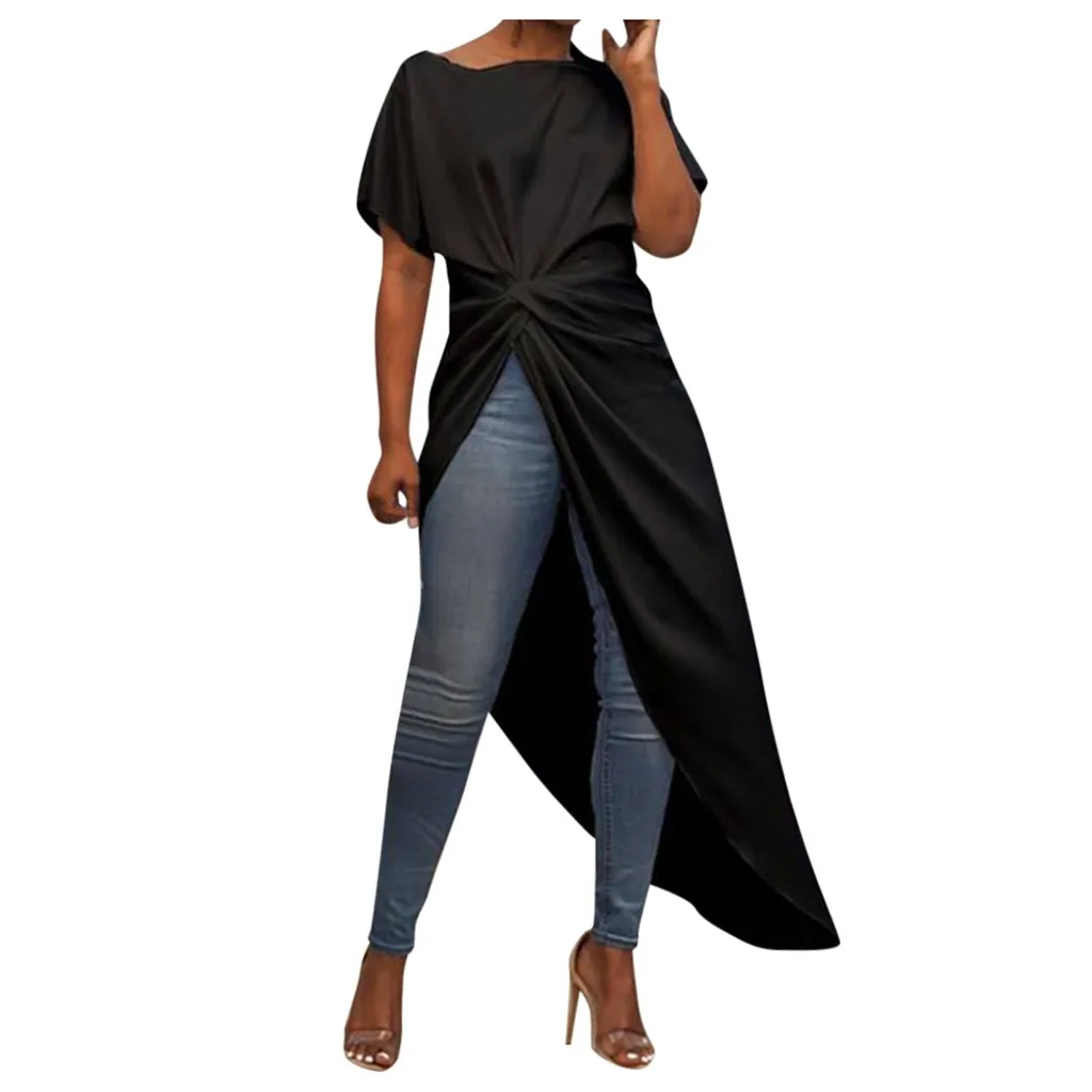 Женская Повседневная Асимметричная блузка, плиссированная рубашка с коротким рукавом, топ со шлейфом