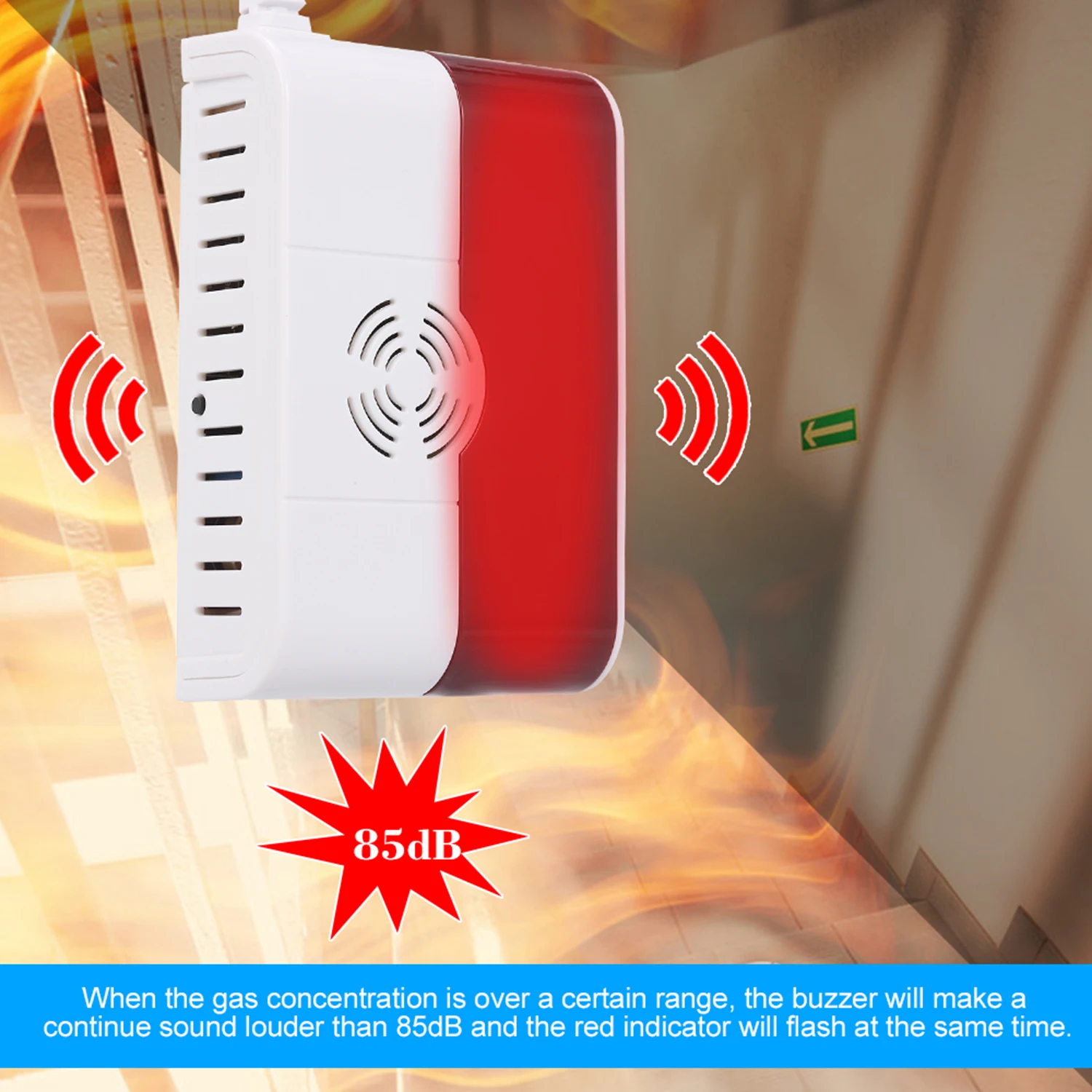 【 85 дБ звуковой сигнал 】Когда концентрация газа превышает определенный диапазон, зуммер издаст звук продолжения громче 85 дБ, и красный индикатор будет мигать одновременно.