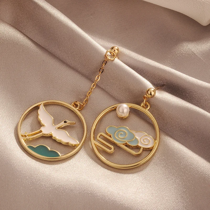 2020 Ретро крановые серьги для женщин и девушек Модные металлические Асимметричные висячие серьги ювелирные изделия жемчужные эмалированные Висячие серьги Bijoux