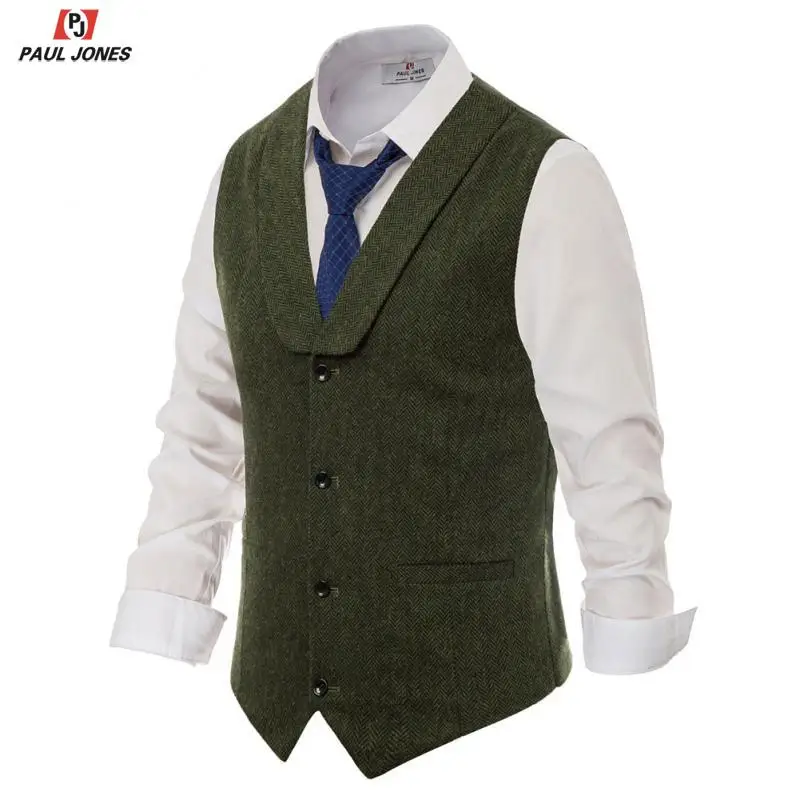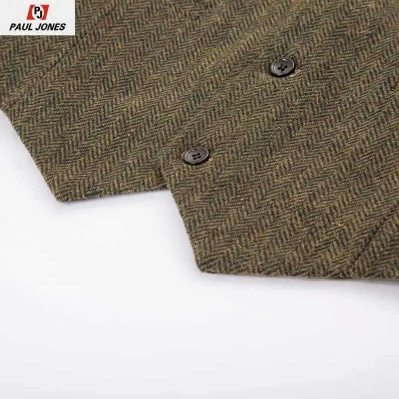 Мужской твидовый жилет с узором в елочку PAUL JONES, шерстяной жилет с отложным воротником Ткань: 80% полиэстер + 20% шерсть Особенности: рисунок «елочка»; без рукавов; воротник с лацканами; v-образный вырез; планка на пуговицах; два кармана с реальной вставкой; регулировка талии сзади с ремешком; 4 пуговицы Ремень на талии сзади, регулируемый пояс сзади обеспечивает более точную посадку. Регулировка для лучшей посадки, спереди-твидовая ткань, сзади-полиэстер, подкладка из полиэстера Воротник с отворотами: твидовый жилет с воротником с отворотами, придающий характер жилету. Выглядит стильно и особенно Случаи: твидовый костюм с узором «елочка»; жилет; подходит для свадебной вечеринки, жениха, выпускного, выпускного вечера, семейных фотографий, офиса. Отлично подходит для ношения Под Пиджаком, белой рубашкой, брюками и т. Д.