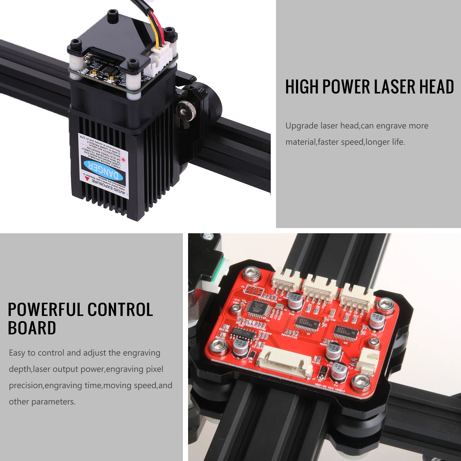 Подключи и работай, прост в использовании. Подключите usb-кабель к плате, установите программное обеспечение и начните гравировку. Требуется минимальная сборка. Всего несколько винтов от подключения к ноутбуку.