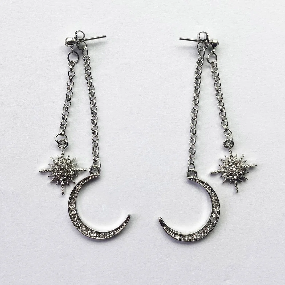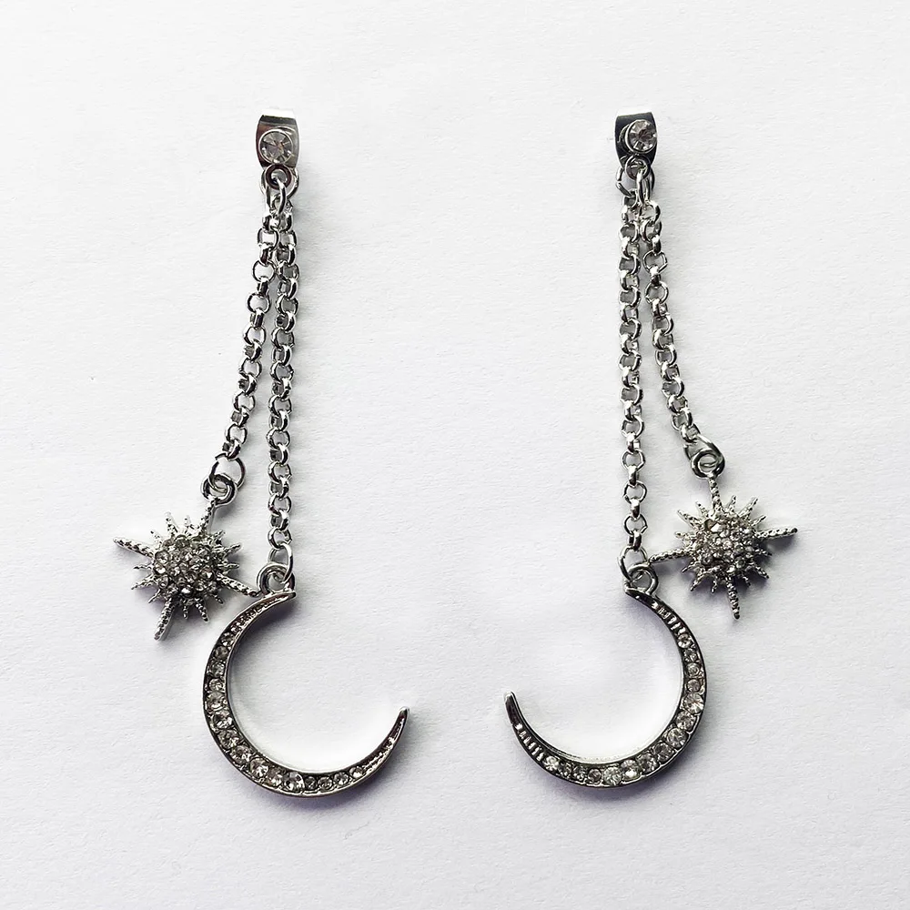 Модные хрустальные серьги-подвески со звездой и Луной для женщин, модные Элегантные Очаровательные стразы, серьги-подвески Starburst, ювелирные изделия, подарочные аксессуары