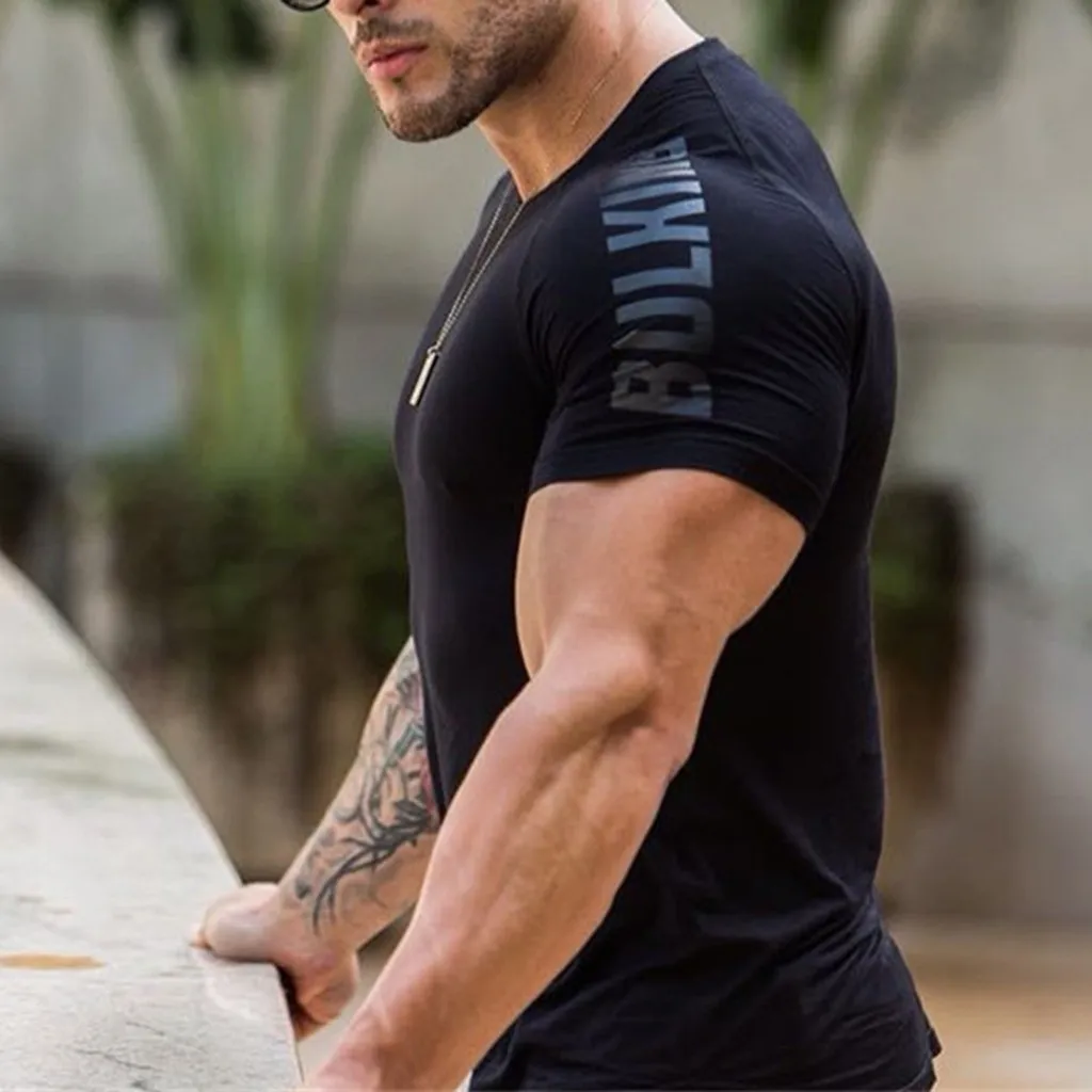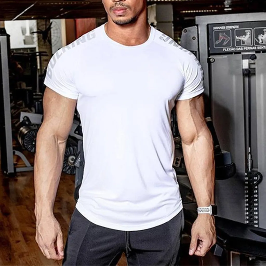 Мужской облегающий Быстросохнущий Топ для фитнеса с коротким рукавом, Высокоэластичный топ с принтом