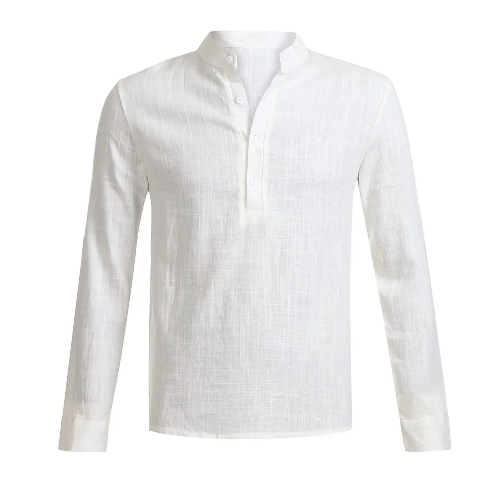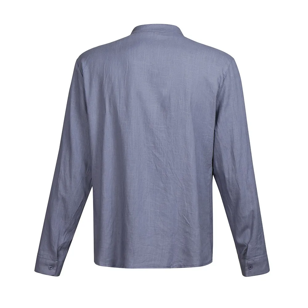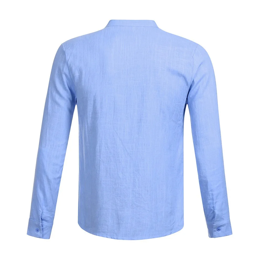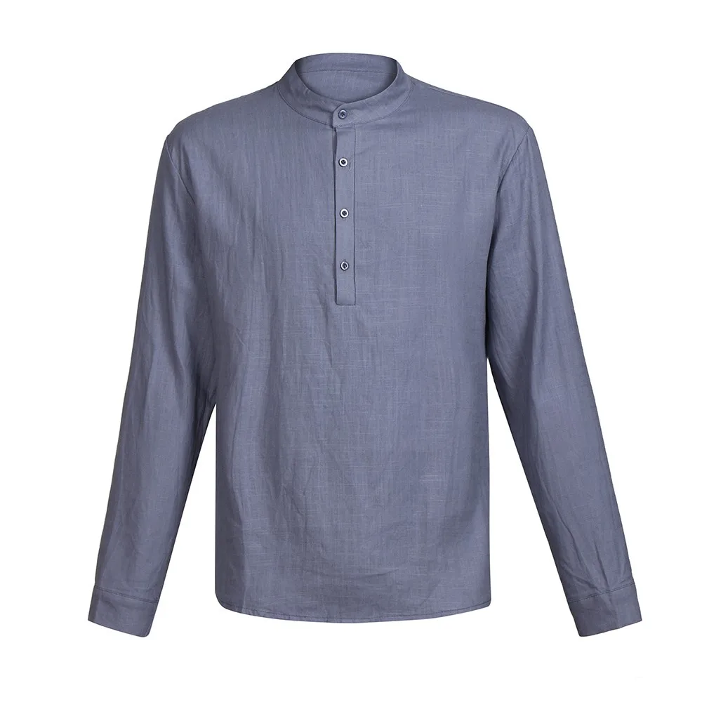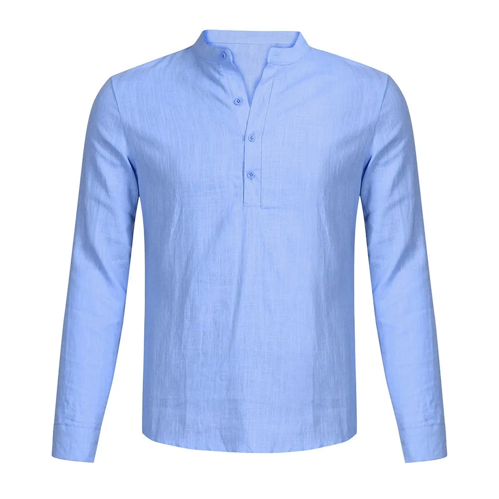 Мужская льняная рубашка с длинным рукавом и v-образным вырезом на пуговицах, мужская повседневная деловая рубашка