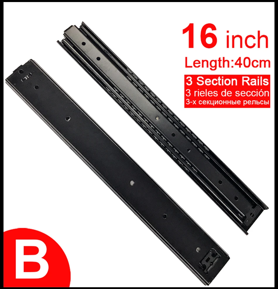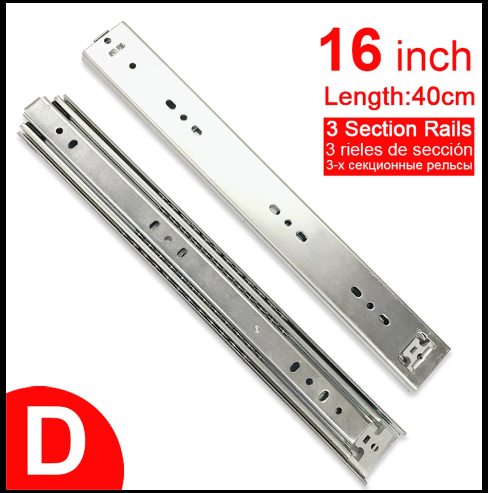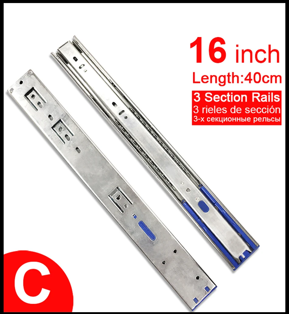 12 "16" направляющие из нержавеющей стали для выдвижных ящиков, направляющие для выдвижных ящиков, раздвижные Трехсекционные направляющие для шкафа, мебельная фурнитура