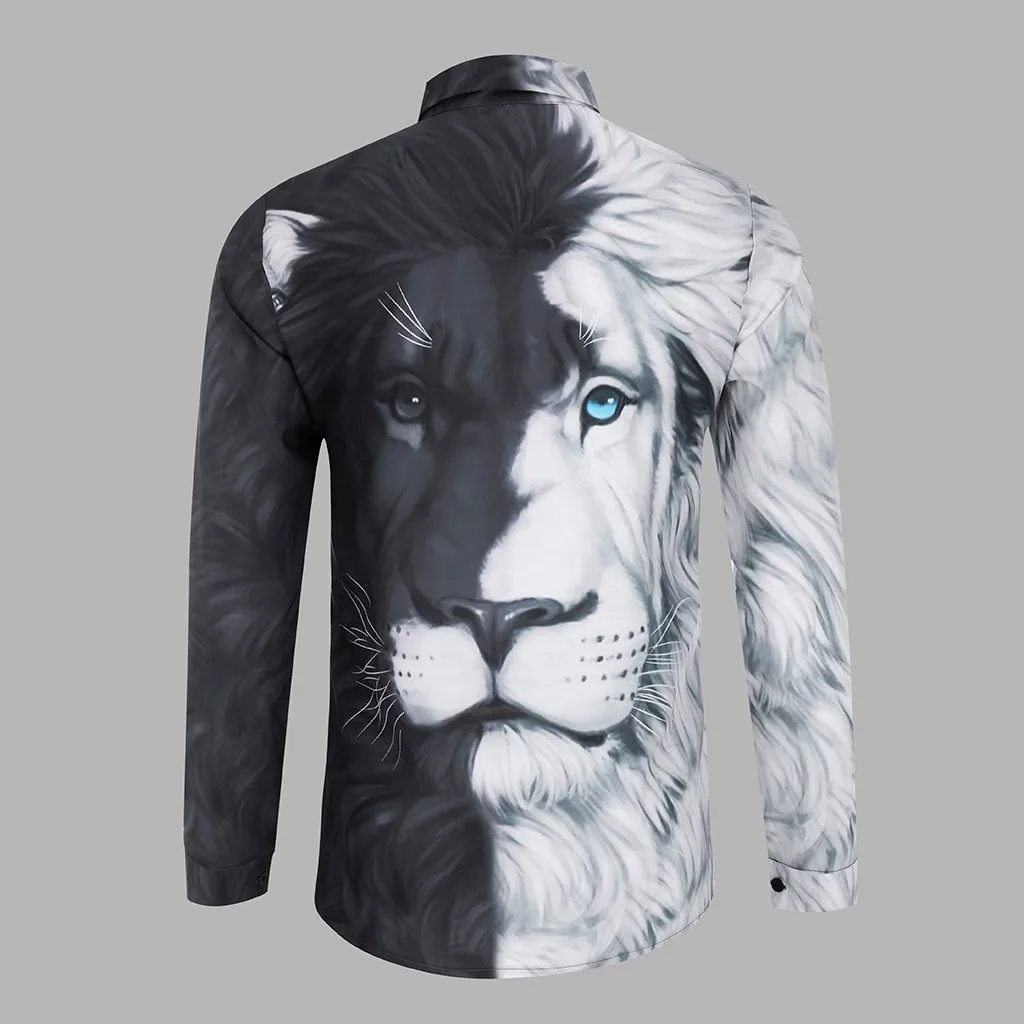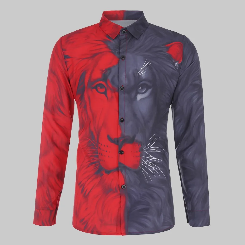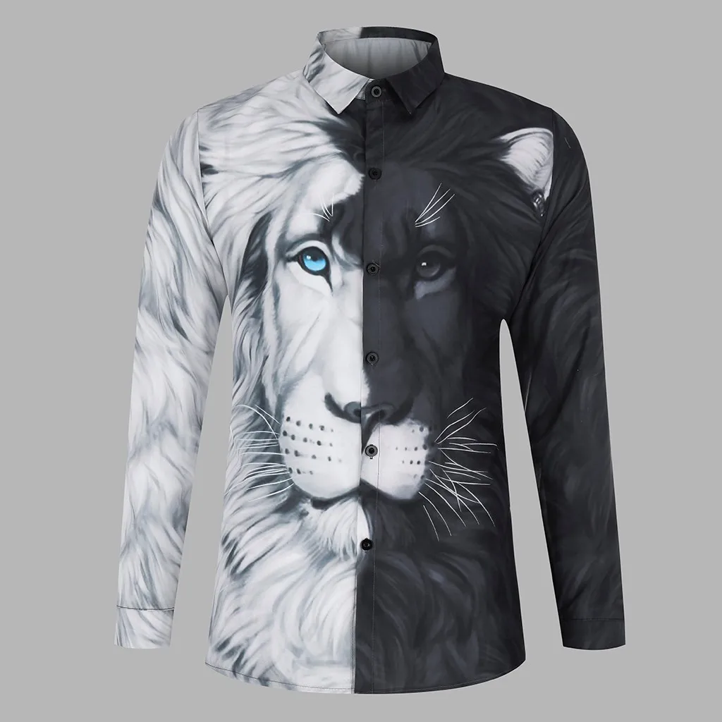 2020 New Men Women Fashion Lion Printed Long Sleeve Shirts Novelty Print Shirt Top Blouse Streetwear Camisa Hombre Casual Shits