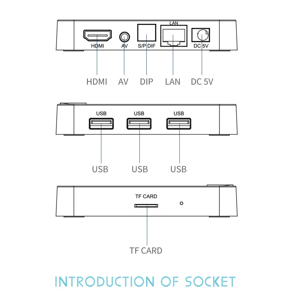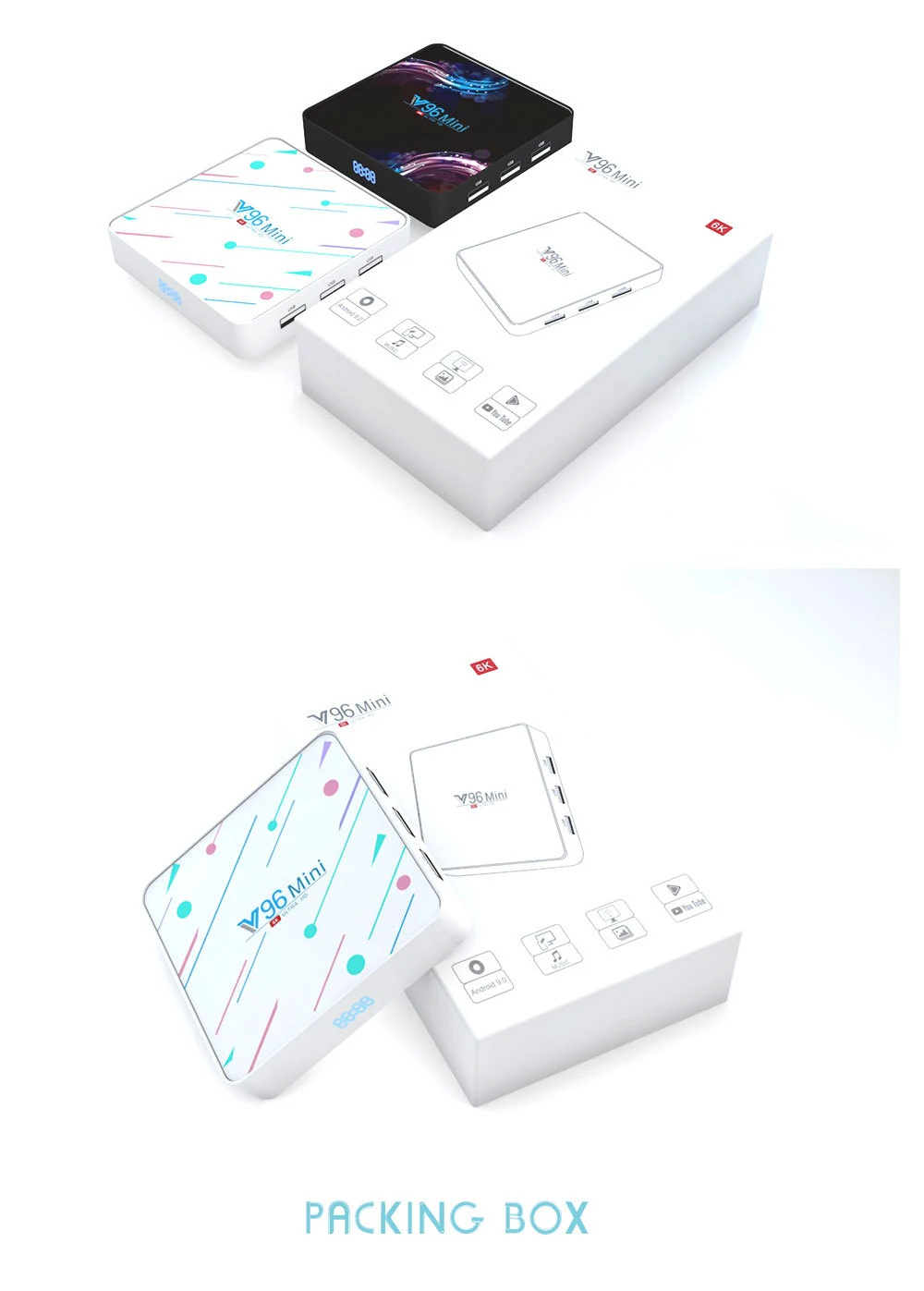 М основные функции: -Процессор:Allwinner H6 4 ядра 64-бит ARM Cortex-A53 -GPU:Высокопроизводительный многоядерный GPU Mali T720 -ОЗУ: 4 Гб DDR3 -Встроенная память:64 Гб/128 ГБ (По желанию) -WI-FI: 2T2R IEEE 802,11 a/b/g/n/ac #652882,4G & 5G #65289 Поддержка 20 МГц/40 МГц/80 МГц -Сеть Ethernet: RJ45 IEEE 802,3 10/100M/ -Поддержка 2,5 дюймов Тетрадь Размер затрудняетесь в выборе правильного размера? SSD/HDD 2 ТБ (HDD/SSD в комплект не входит в посылка) -Поддержка 2,4G и 5G WI-FI -Поддержка Bluetooth v4.1 -Операционная система:Android 9,0 -Google tv box play -USB 3,0 порт -Поддержка формата декодера: 4K VP9, видеодекодер H.265/H.264 Другие видеодекодеры 1080P (VC-1, MPEG-1/2/4, VP6/8) -USB-хост: 1 Высокоскоростной USB 3,0 1 * USB 2,0 -HDR:HDR10 и HLG режимы -3D: 3D видео формат Что в коробке: - (1 шт.);ТВКоробка