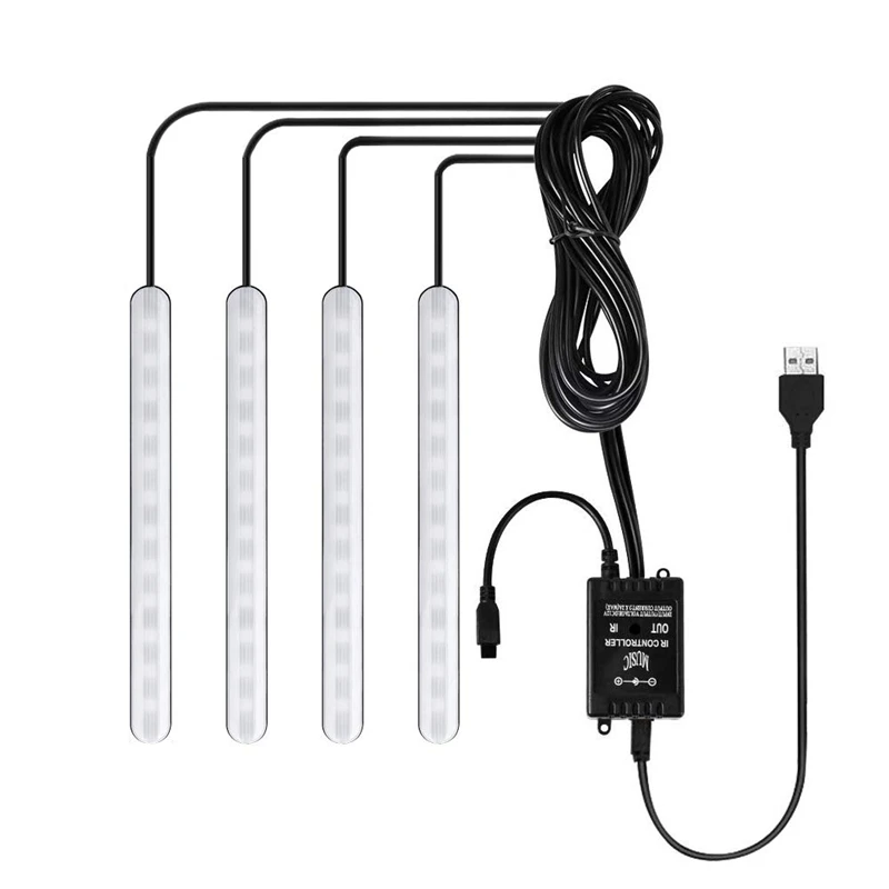 4. Простая установка и удобное подключение: это 4 в 1 Автомобильный Внутренний USB светильник, в том числе 4 шт. полоски с более длинными проводами. Светильник s tape поставляется с сильным клеем, не нужно собирать ленточный светильник, более легко установить и спрятать, держите ваш автомобиль чистым и аккуратным. Кроме того, наша посылка поставляется с дополнительным промоутером адгезии, вы получите двойную вязкость после нанесения его на место, где должны быть установлены полоски.